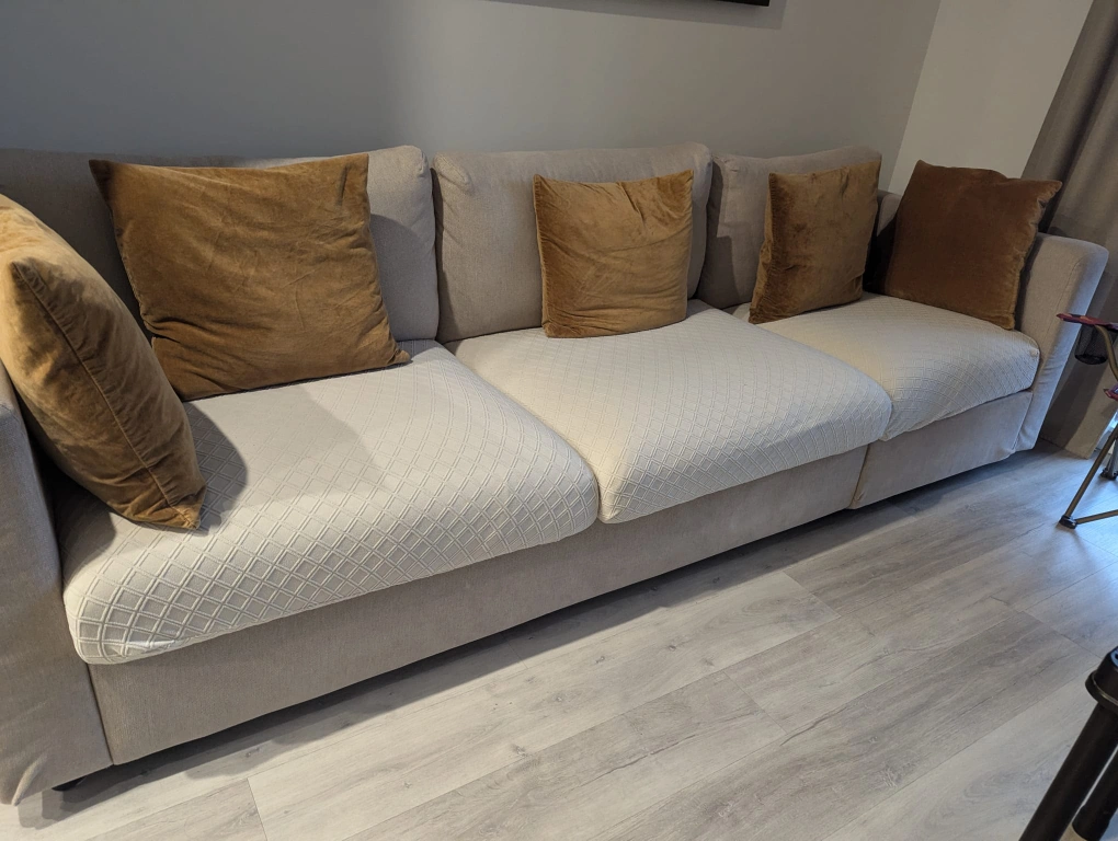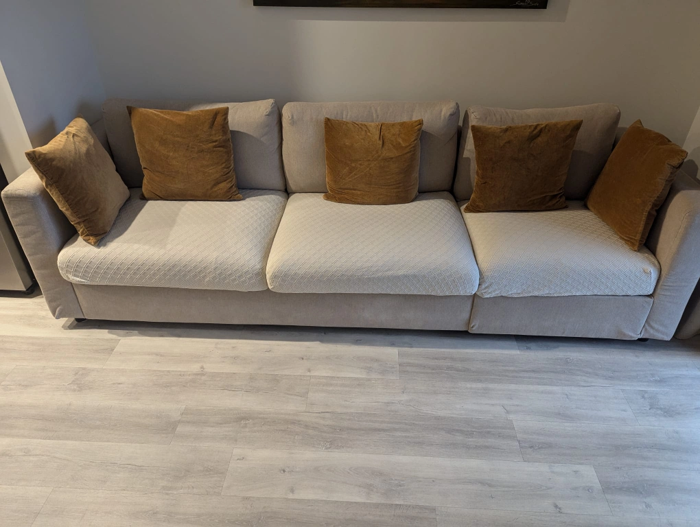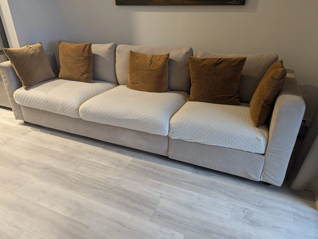 Living room set : big couch and Cozy creamy Boucle Armchair