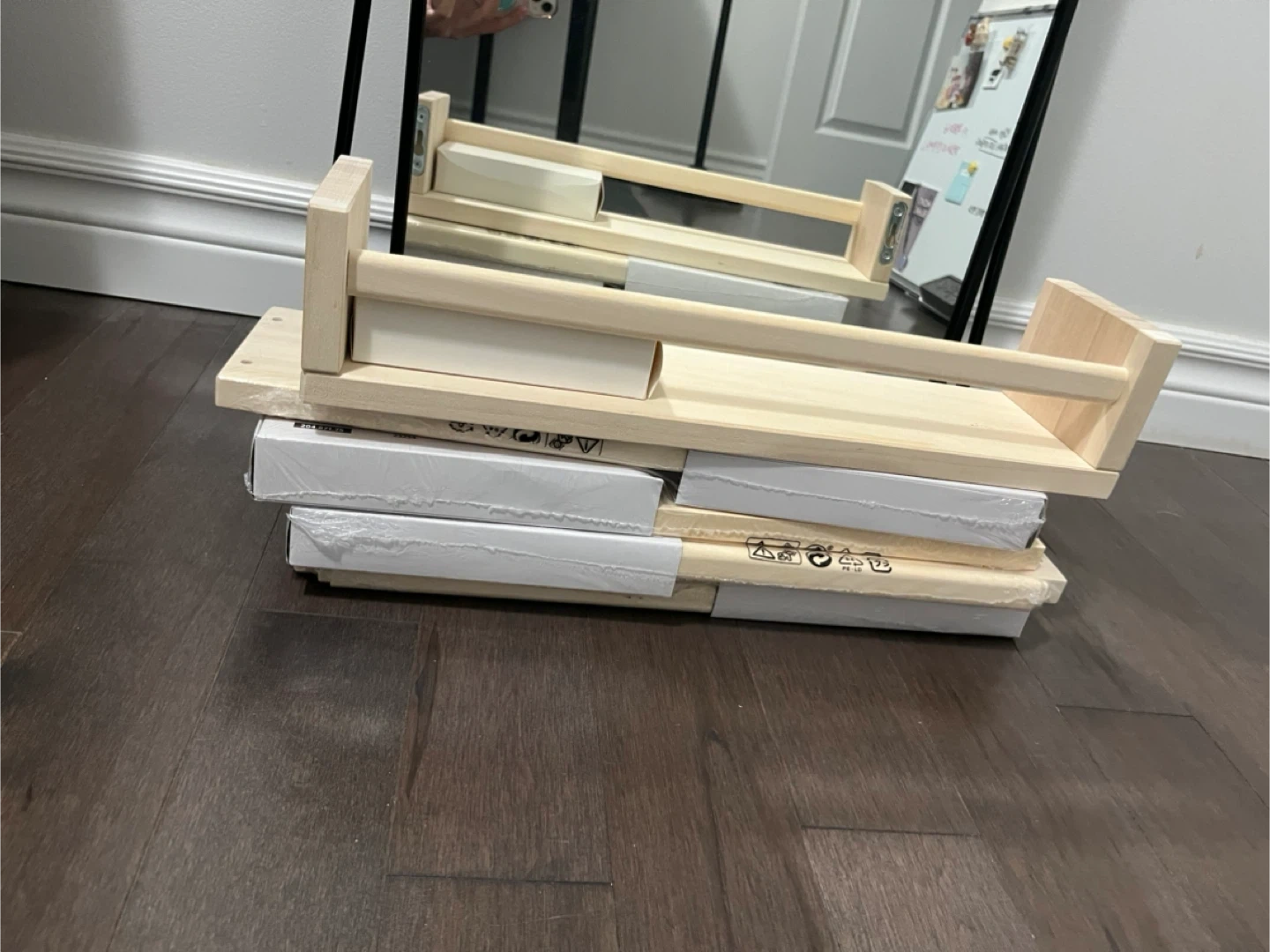 Selling a set of IKEA BEKVÄM spice racks in birch. They're perfect for adding extra storage in the kitchen or any room! Each rack measures 40 cm (15 3/4") in length, 10 cm (3 7/8") in depth, and 9 cm (3 1/2") in height $10 for one $40 for all five All brand new (one is assembled/never used - the rest is still in its original packaging)