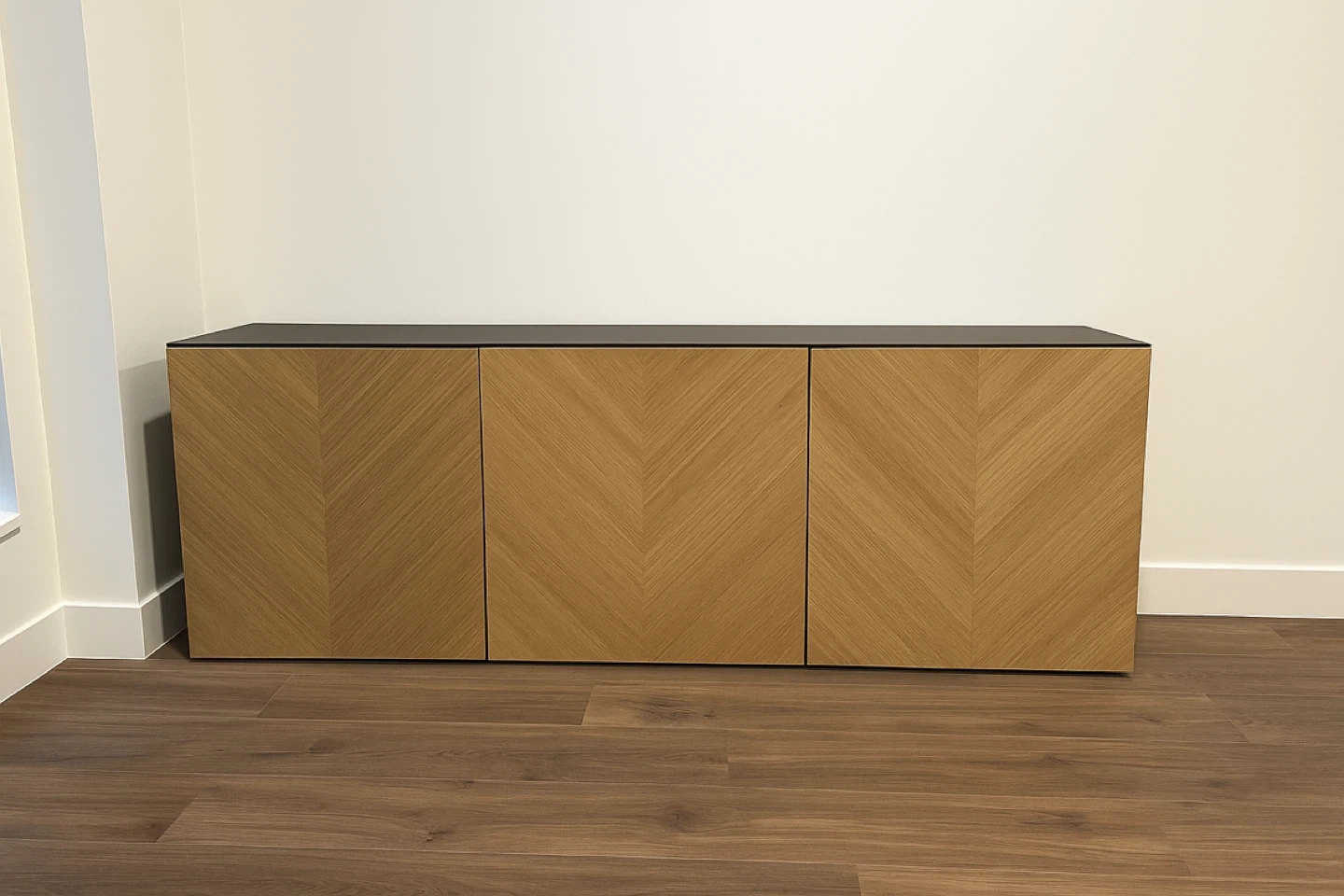 112A stylish floor cabinet in like-new condition. No scratches or marks. This piece offers ample storage space in living room, bedroom or home office with its interior shelving and height. 180x42x64 cm Original $370 Pick up only. Thank you.