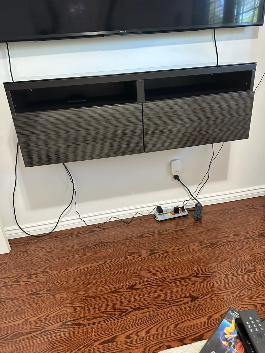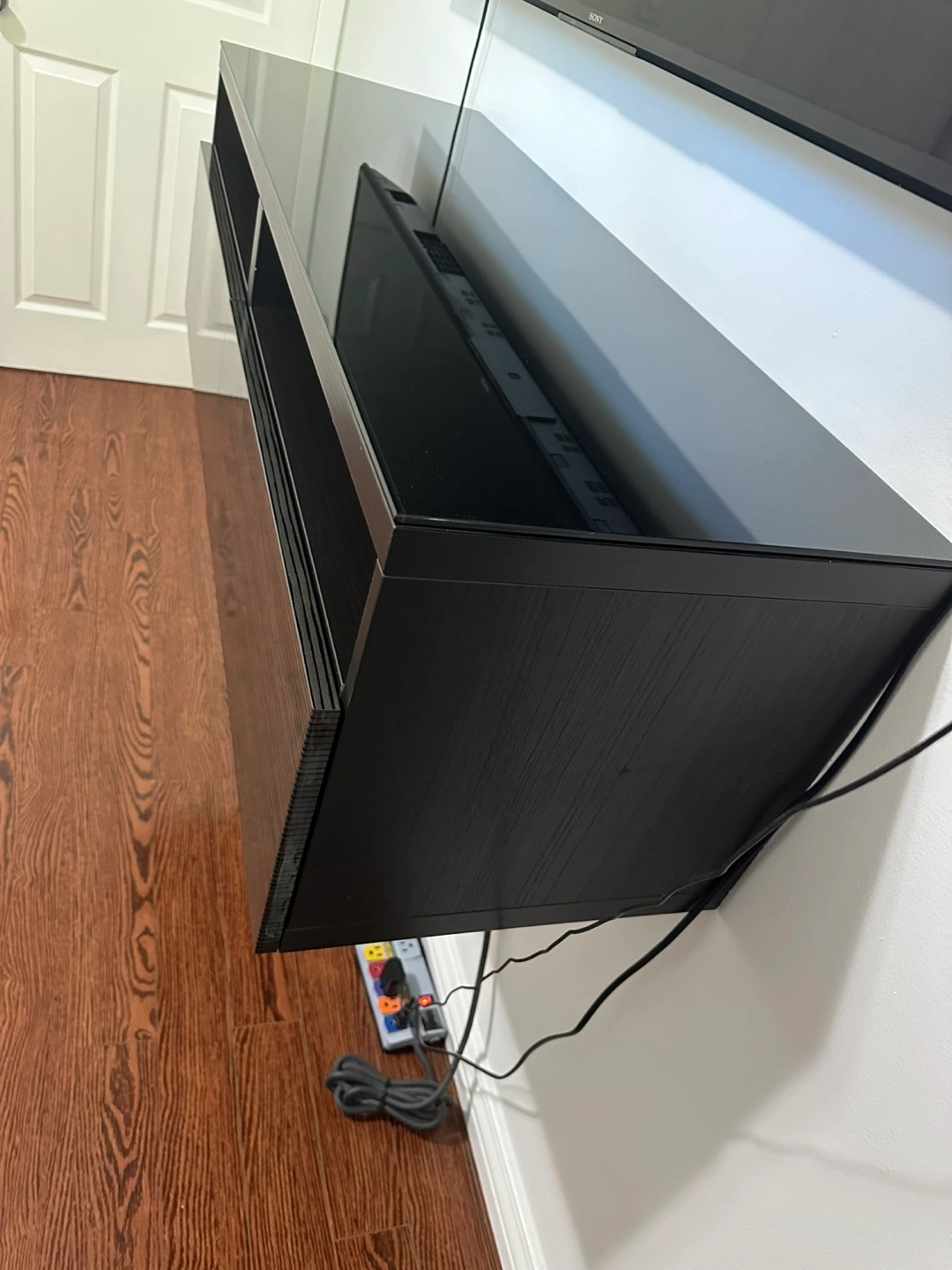Selling a used Ikea Besta wall-mounted media console. It's in good condition and perfect for organizing your entertainment area. The console is black-brown in colour and offers a sleek, modern look for any living room