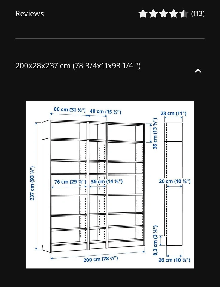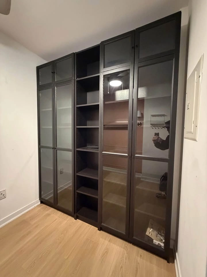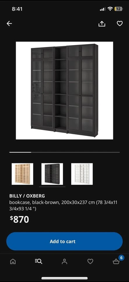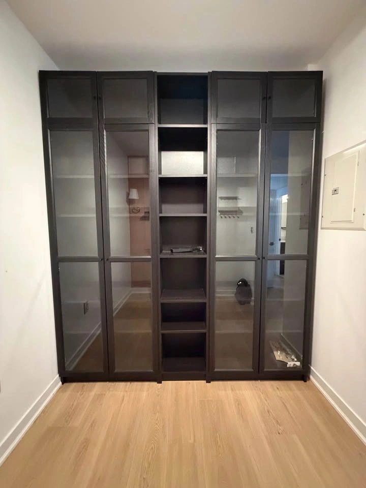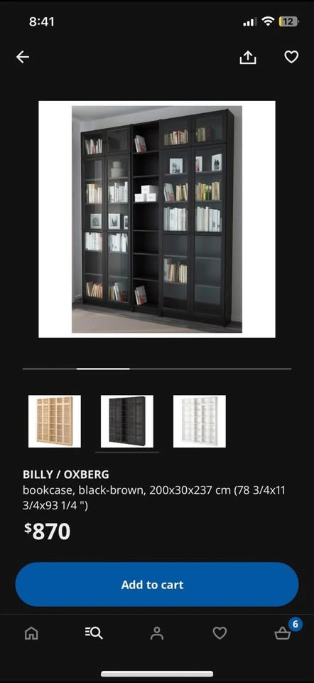 15Selling our IKEA BILLY OXBERG bookcase in the elegant black-brown finish. It’s in like-new condition and super versatile! We originally used it as a shoe shelf, but it works great as a bookshelf, clothing shelf, or general storage/display unit. Perfect for any space: bedroom, hallway, living room or office. Dimensions are in the photos. We’re only selling because we’re moving out and can’t take it with us. - Adjustable shelves - Sleek, minimal IKEA design - Can be used for books, shoes, clothes, or décor - Comes apart into three pieces for easy transport - Pickup only. You’ll need a truck, van, large SUV or U-HAUL Great quality and ready for a new home!