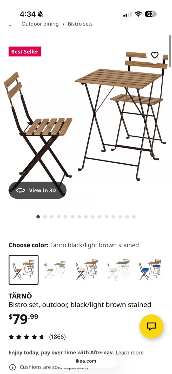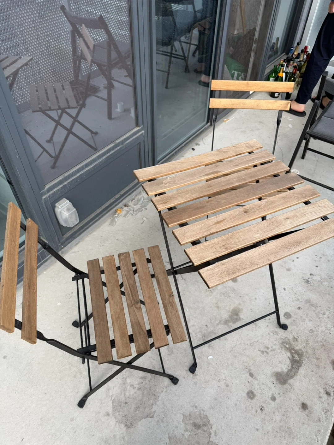 Selling an IKEA bistro set perfect for outdoor dining! The set is black and light brown stained. A great little set to enjoy your morning coffee or an evening drink on the balcony or patio. Originally bought for $80+tax