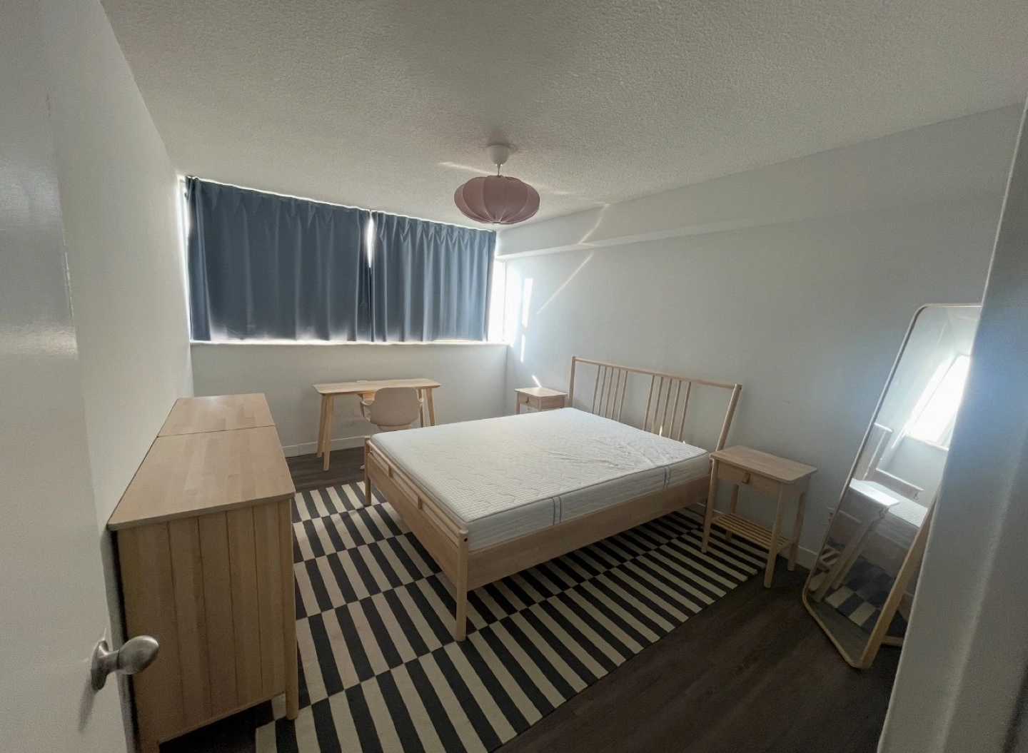 89🛏️ Lightly used IKEA BJÖRKSNÄS bedroom set. Includes queen bed frame with headboard/footboard, 2 five-drawer dressers, small desk with desk chair, mirror, plant stand, rug, and a mattress. Light oak. Modern minimalist design. 🩷 Excellent condition. Buyer responsible for pick-up. Pick-up at XYZ Storage on Eastern Avenue! ✨Also willing to sell items individually!✨