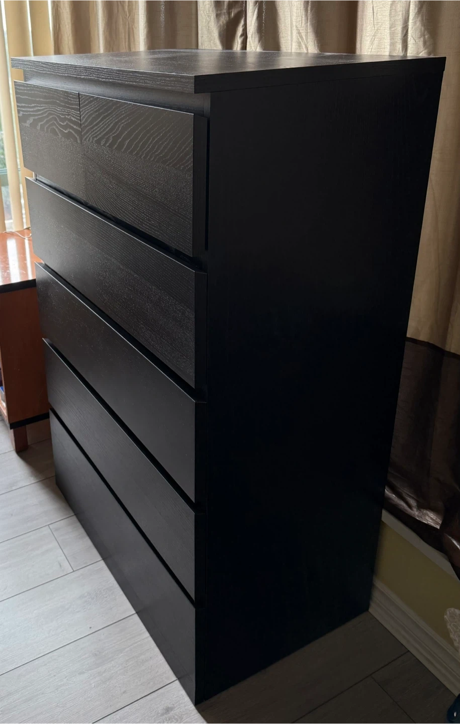 Selling an IKEA 6-drawer dresser in black-brown. It's in new condition, great shape and ready for a new home! Perfect for adding storage to any bedroom or living space. The Hemnes series is known for its classic design and sturdy construction