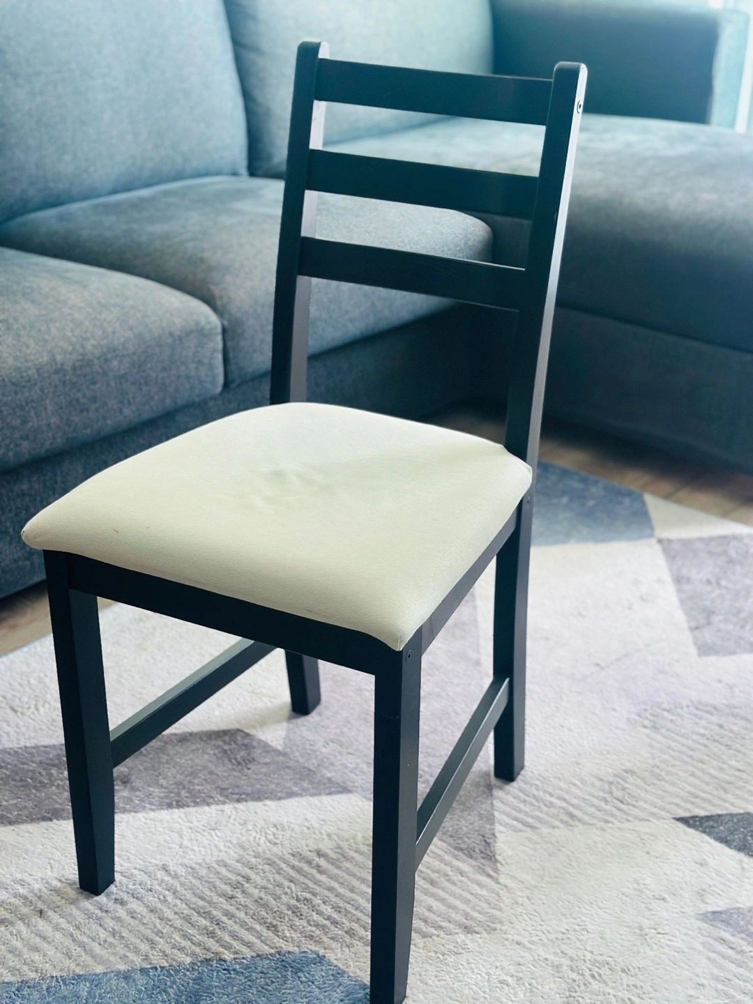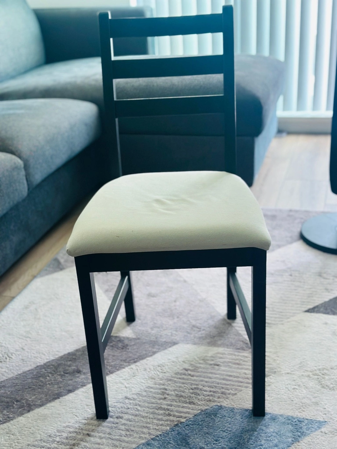 21Selling 2 chair with a black frame and a light-coloured cushion. It's in good condition and would be a great addition to any dining space or as an extra seat in your home. The cushion is comfortable and the chair is sturdy