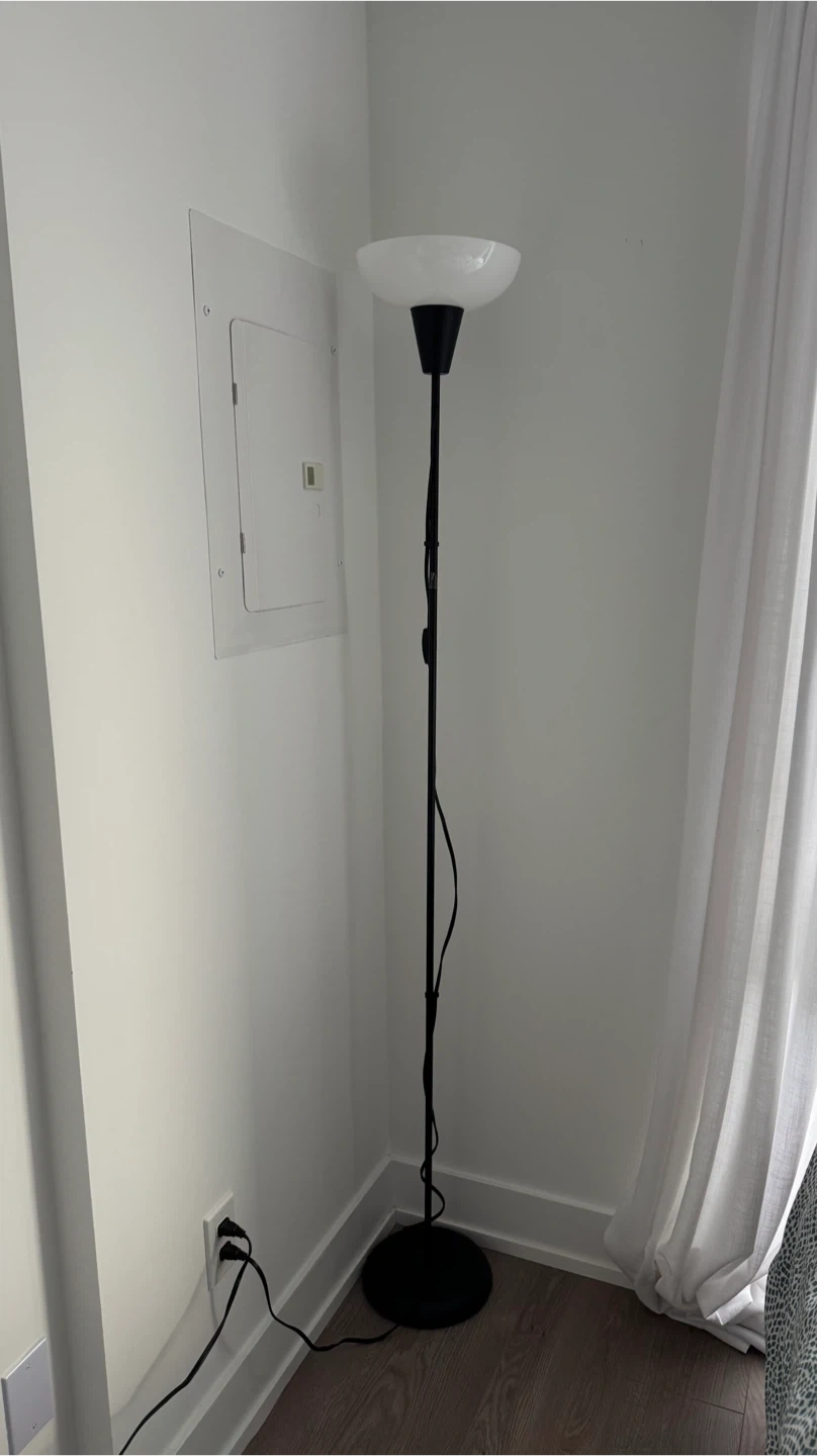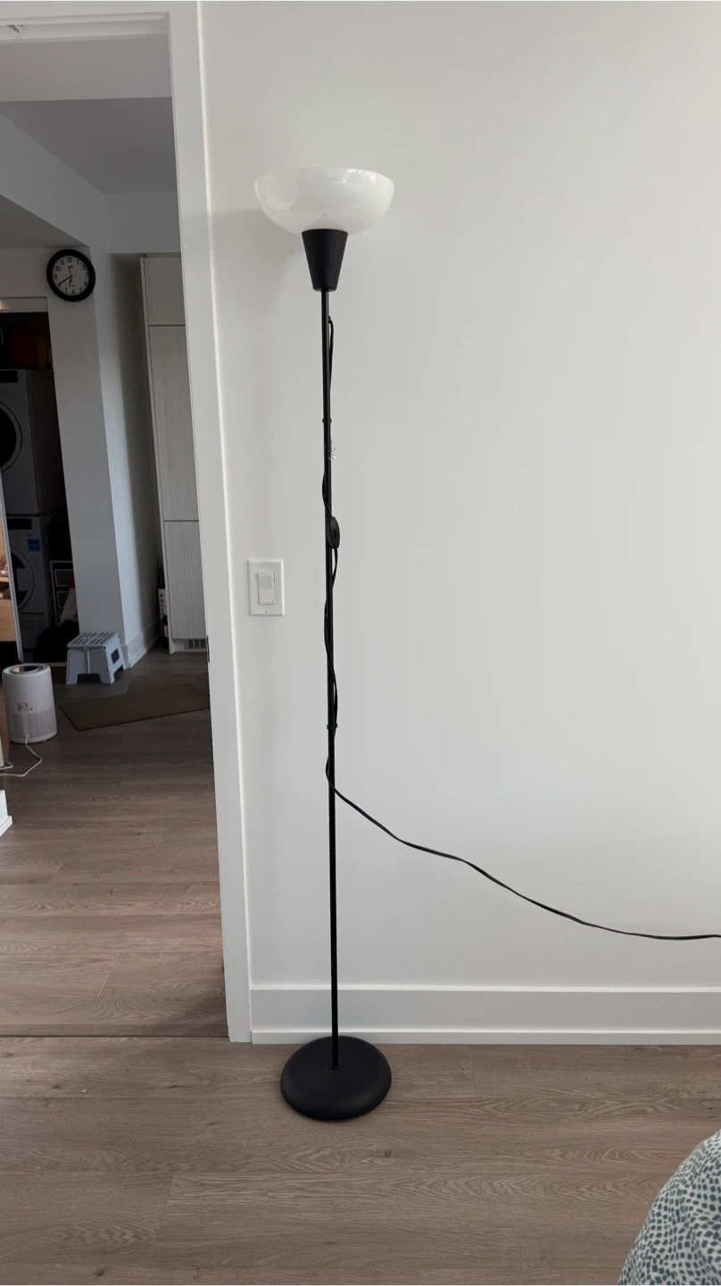 75Selling 2 (two) black floor lamp in great condition! It's perfect for adding some extra light to any room. The lamp has a simple and modern design that will fit in with any decor. It's easy to assemble and use, and it's a great way to brighten up your home