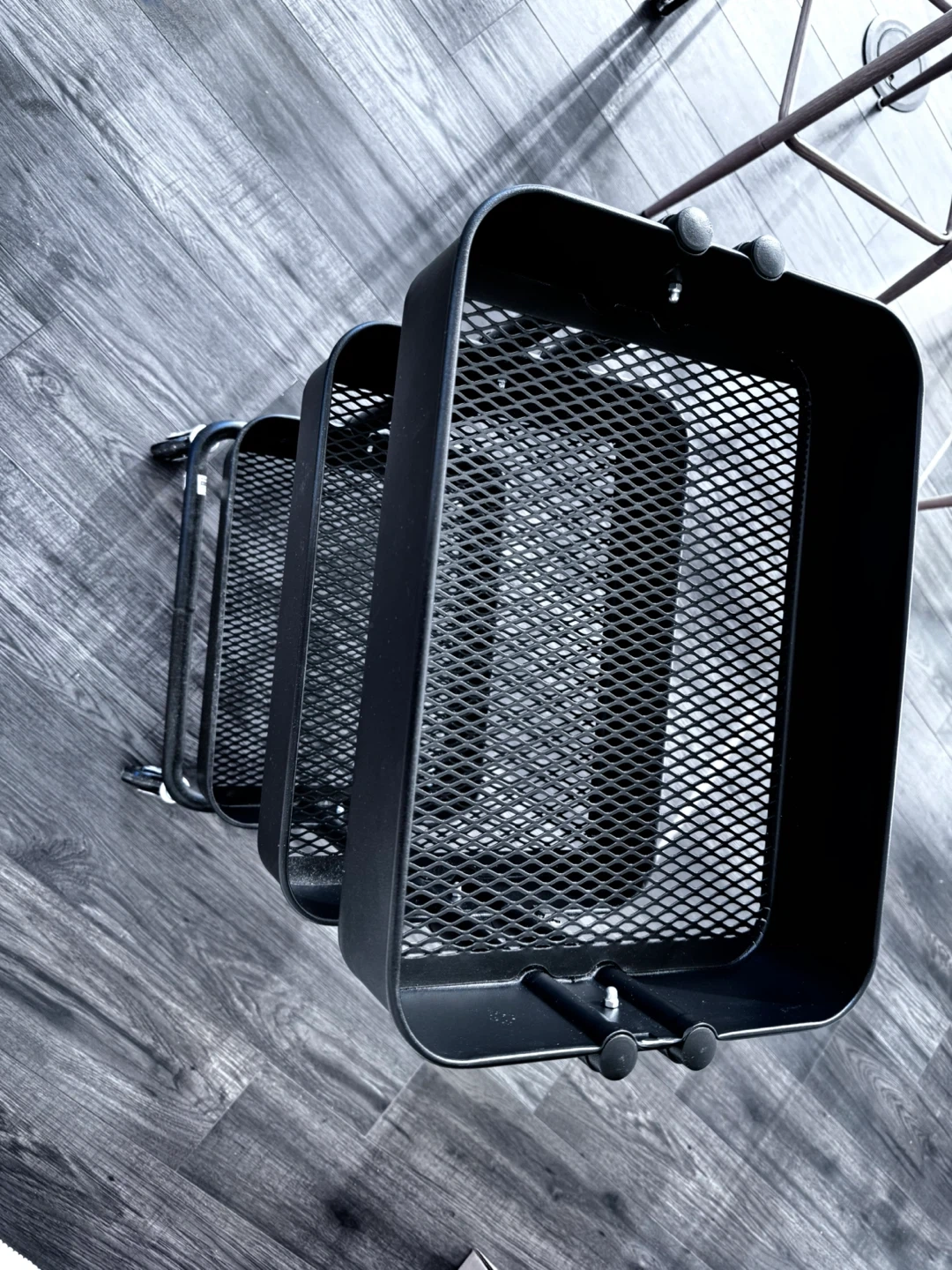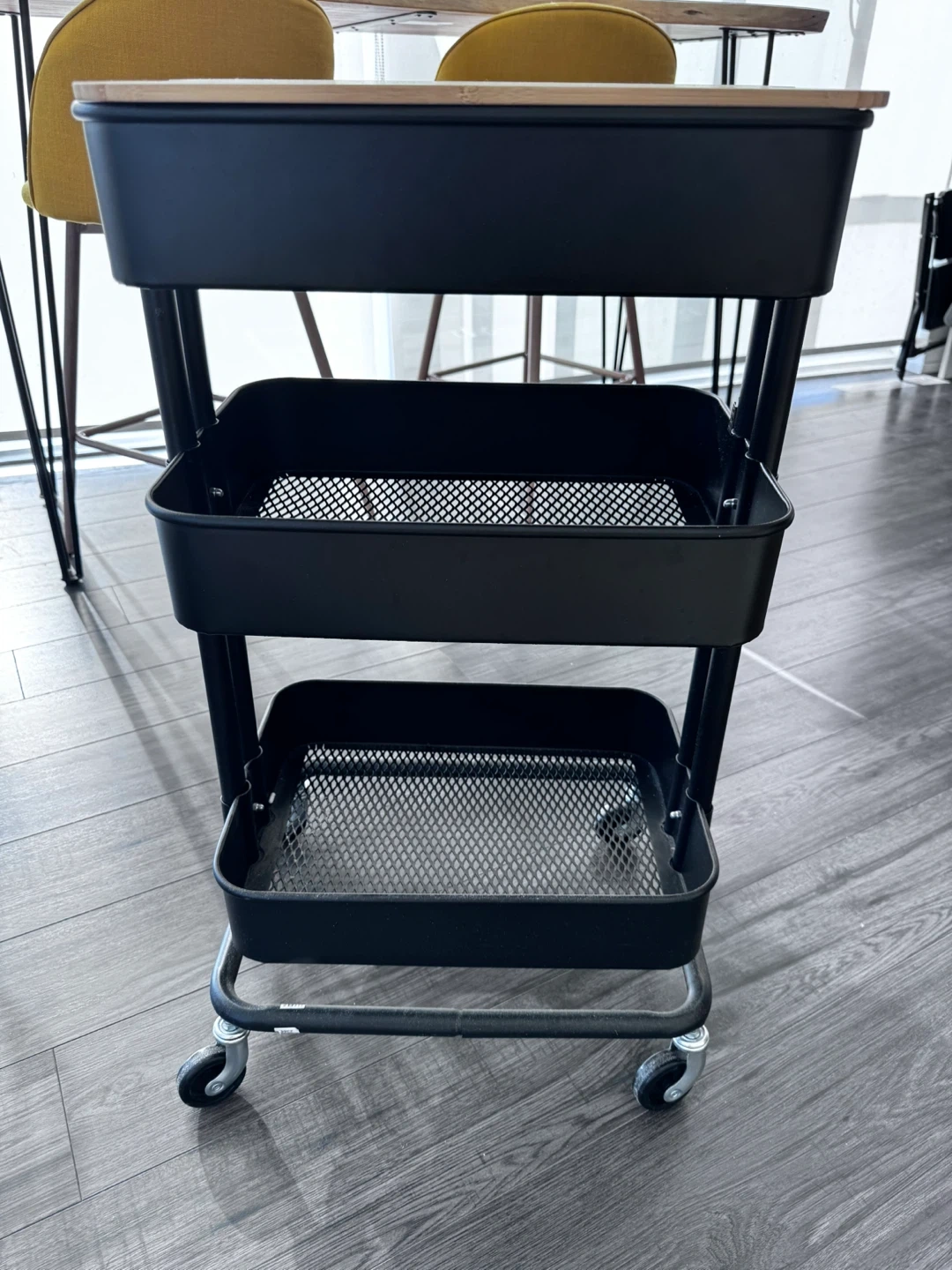 I have 2 sets. Selling a handy rolling cart! It features three tiers of black wire baskets and a wooden top. Perfect for extra storage in any room of your home