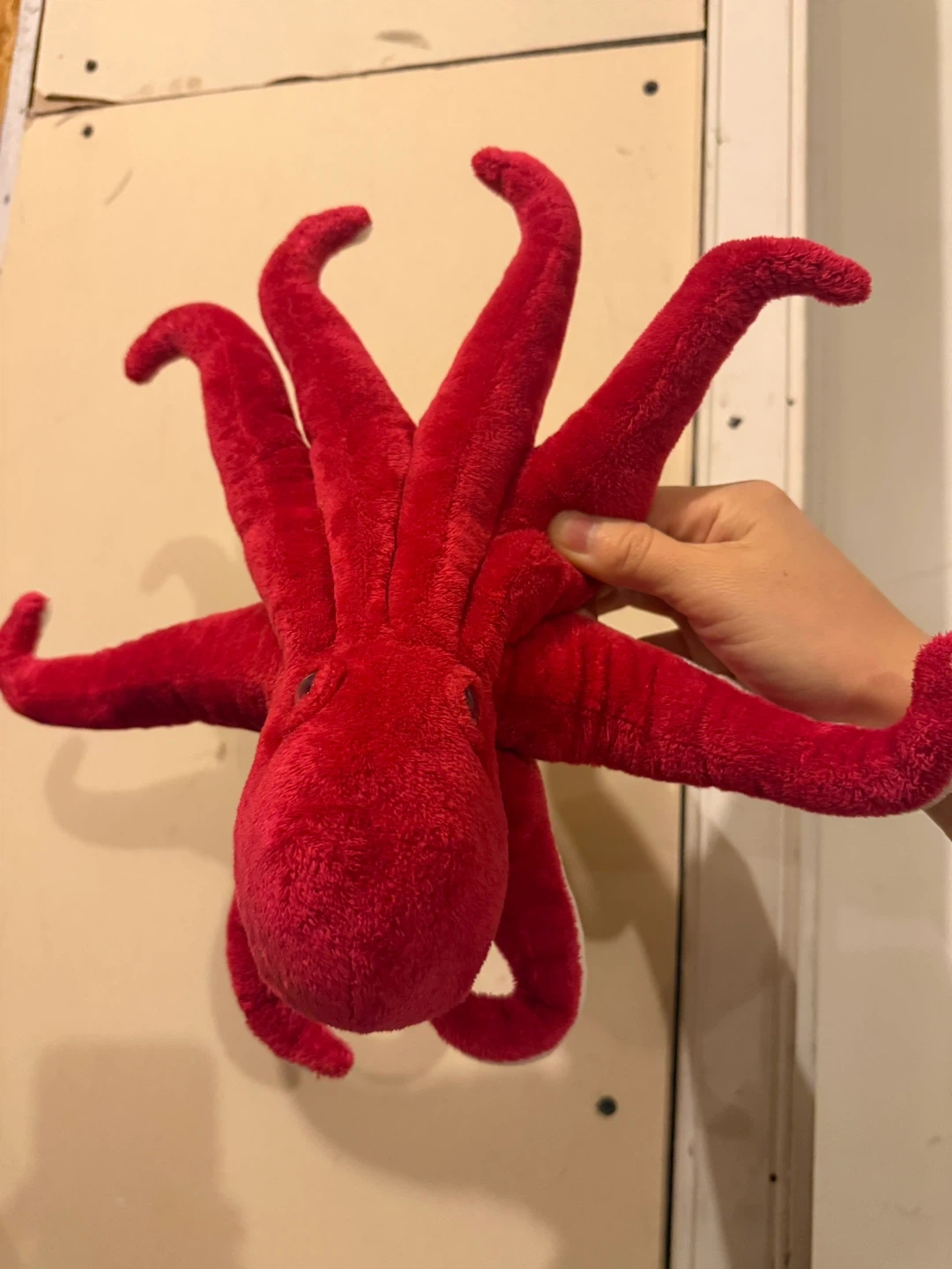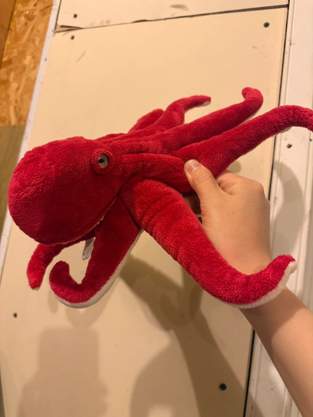 Selling a cute IKEA Blavingad octopus plush in red! It's in great condition and ready for a new home. Perfect for kids or anyone who loves cuddly sea creatures
