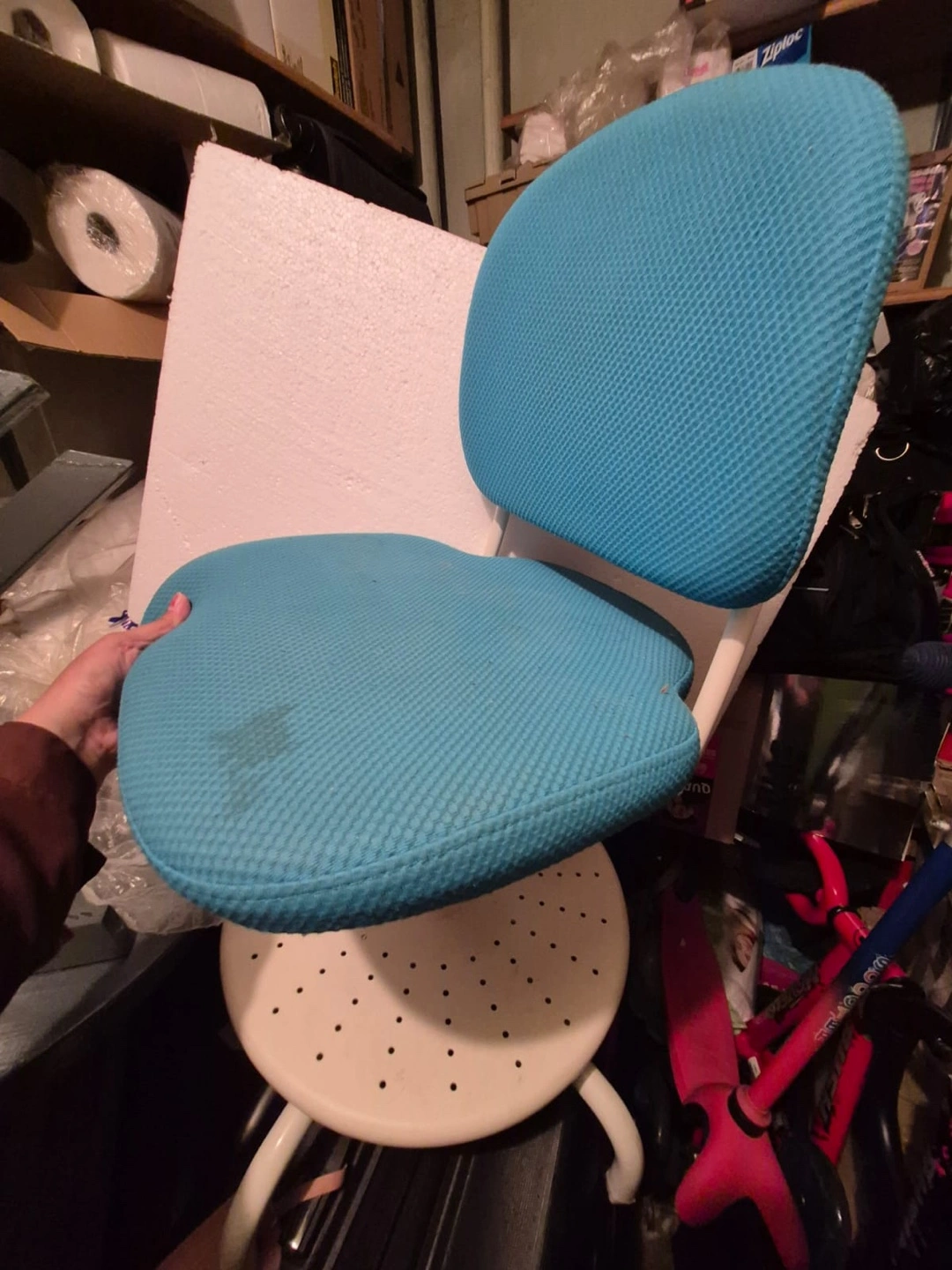 12Selling a blue adjustable kids desk chair. It's in good condition and perfect for a child's study area. The chair is height adjustable, making it suitable for growing kids. It’s without wheels revolving chair safe for kids