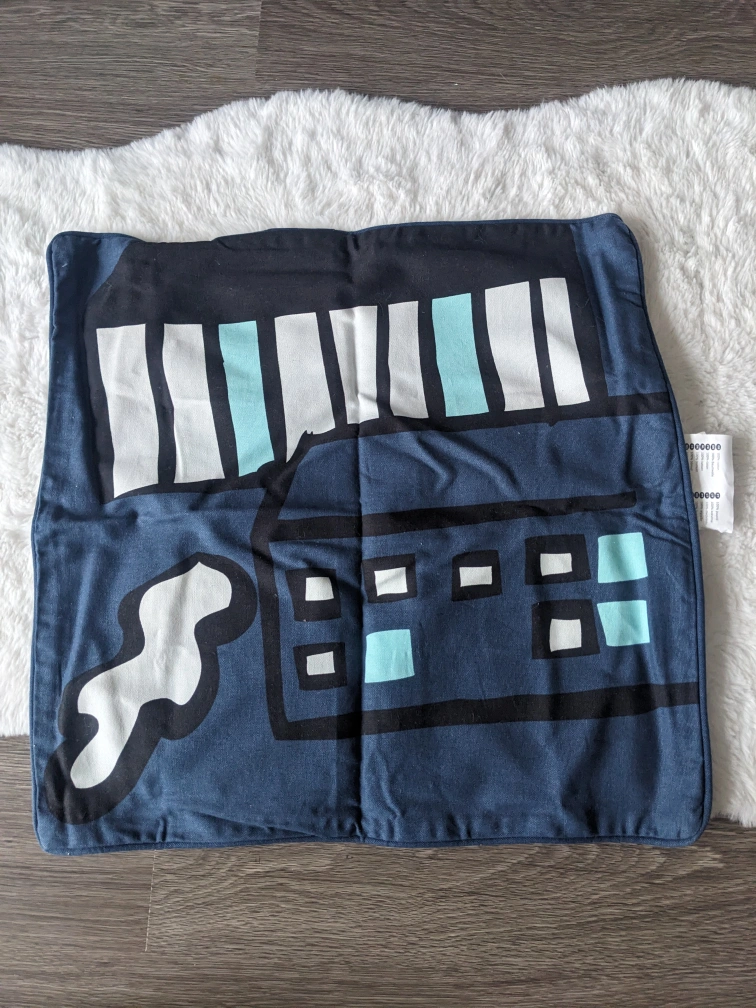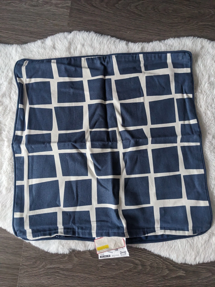 Never used IKEA blue and white pillow cover with geometric design. Pillow insert not included. Tags have been removed as well. My mom bought it because it was on sale but since then it has just been stored in a closet for many years and never used.