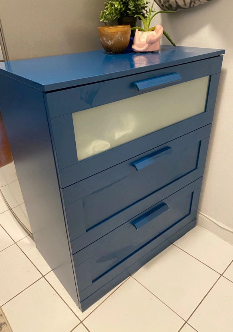 60Three-drawer chest with one frosted drawer. In great condition! Pick-up only as my car isn’t big enough to deliver lol. Cash or e-transfer accepted :)