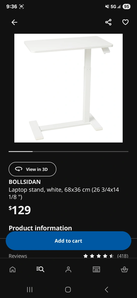 27Selling a white IKEA BOLLSIDAN laptop stand. It's in great shape and perfect for working from your bed or couch! The dimensions are 68x36 cm (26 3/4x14 1/8 ") I have had it for almost 8 months. I am moving to a different province entirely so in badly need to sell this one. As you can see from the picture, I have jotted down the price very low, so please the price is non-negotiable for this one as it was very expensive for me. The table is really really good, cuz I didn't use it that much except just for keeping my stuff on top as you can see from the picture, that's all. Thank you and Happy Buying-Selling ❤️