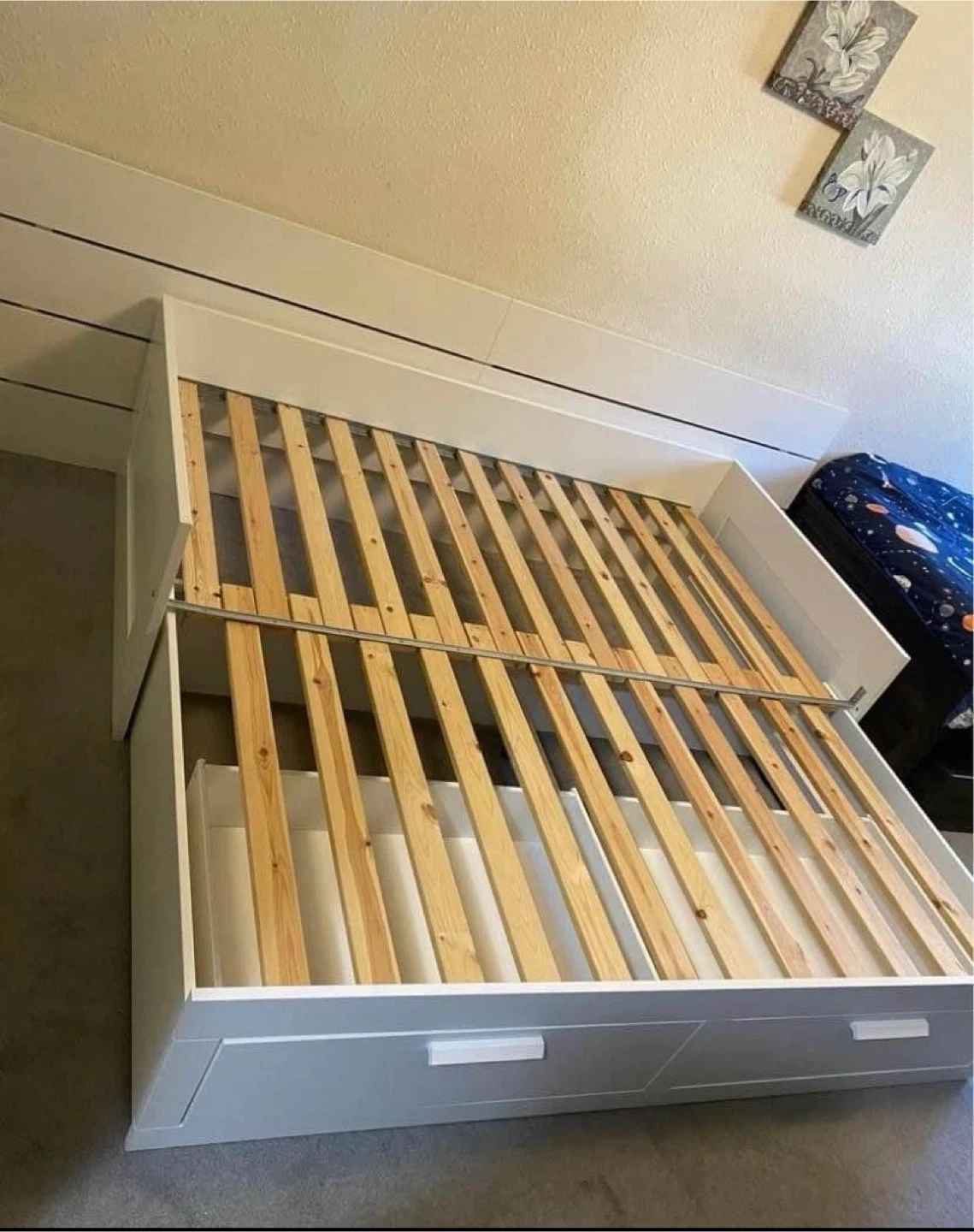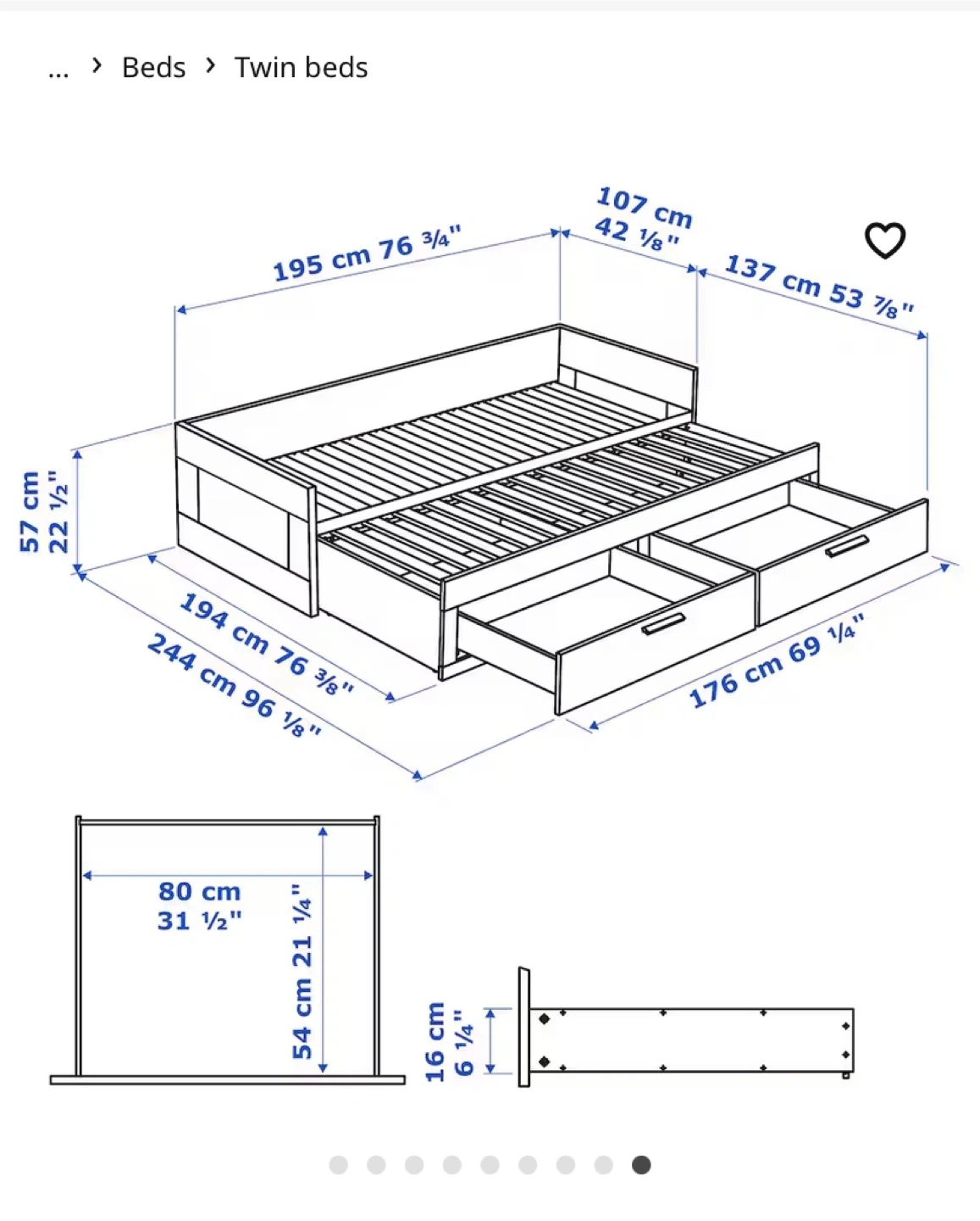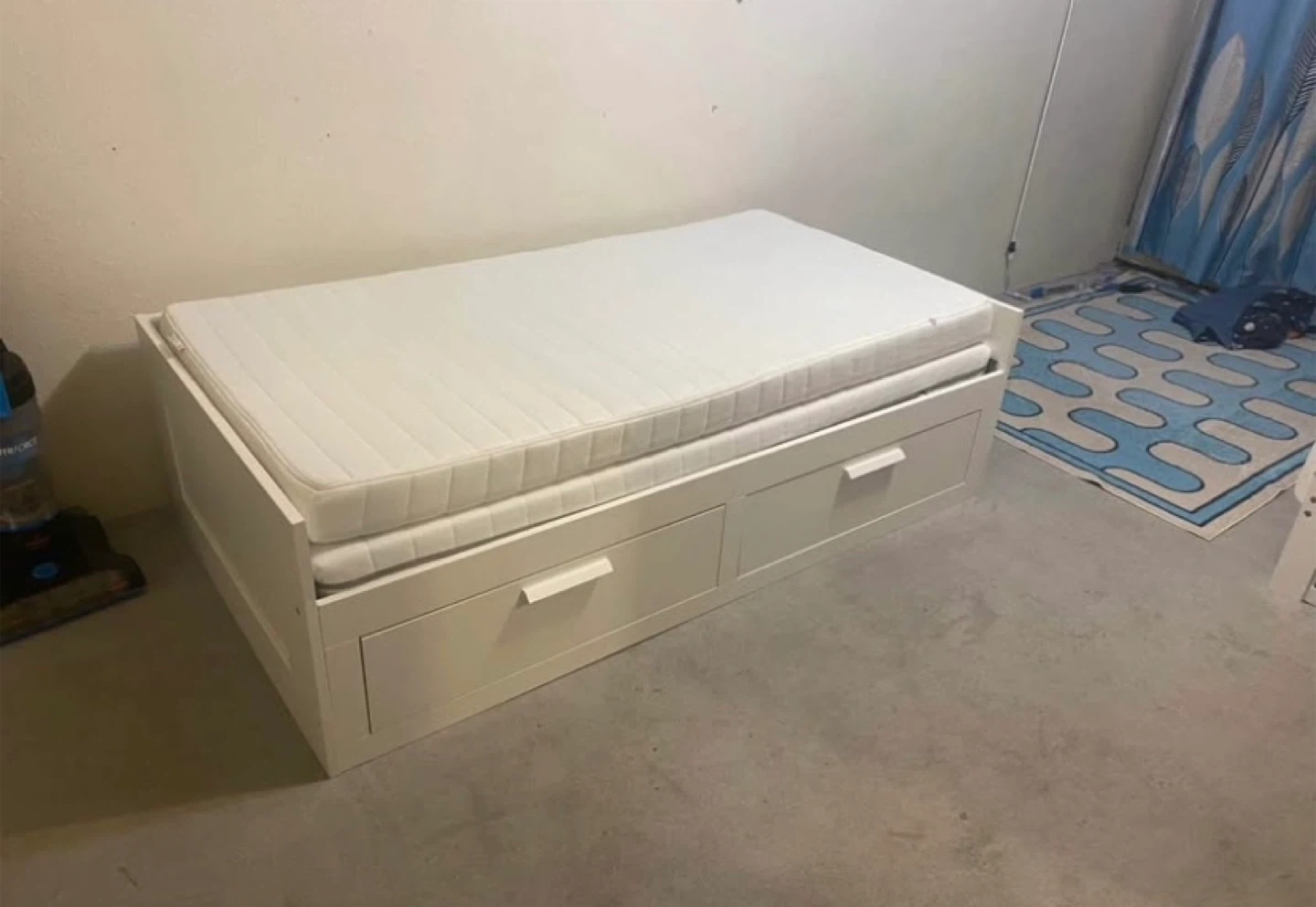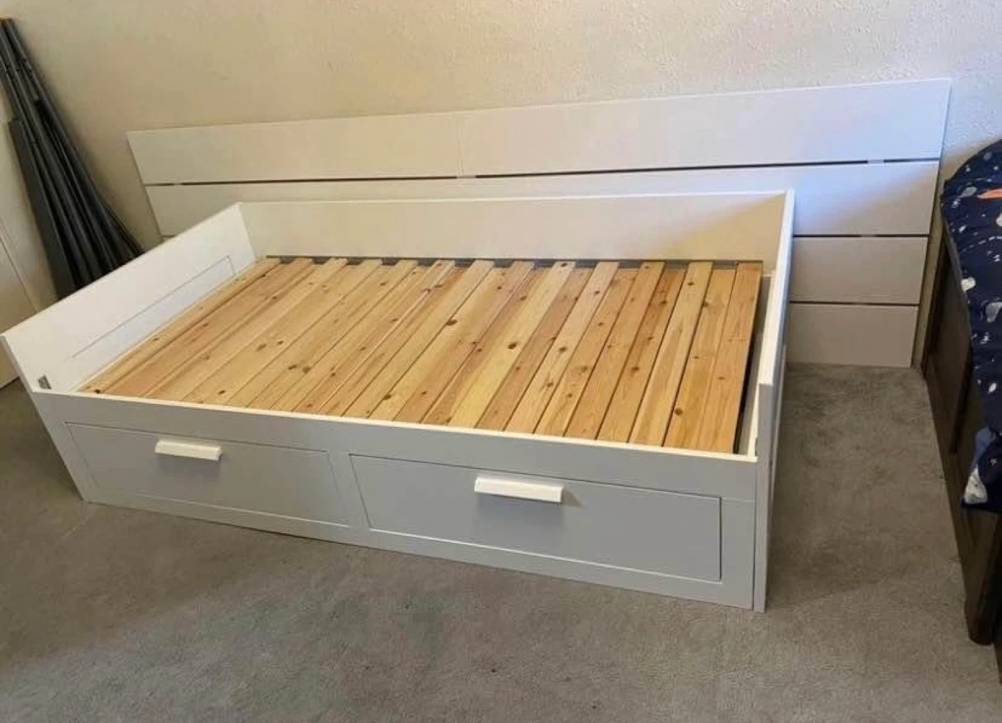 83Brimnes daybed frame with two drawers in white. This versatile piece can be used as a sofa or a single bed, and it pulls out to a double bed or 2 twins . It also has handy drawers for storage. Pick up near surrey centre station,delivery available for extra.(mattresses extra $150