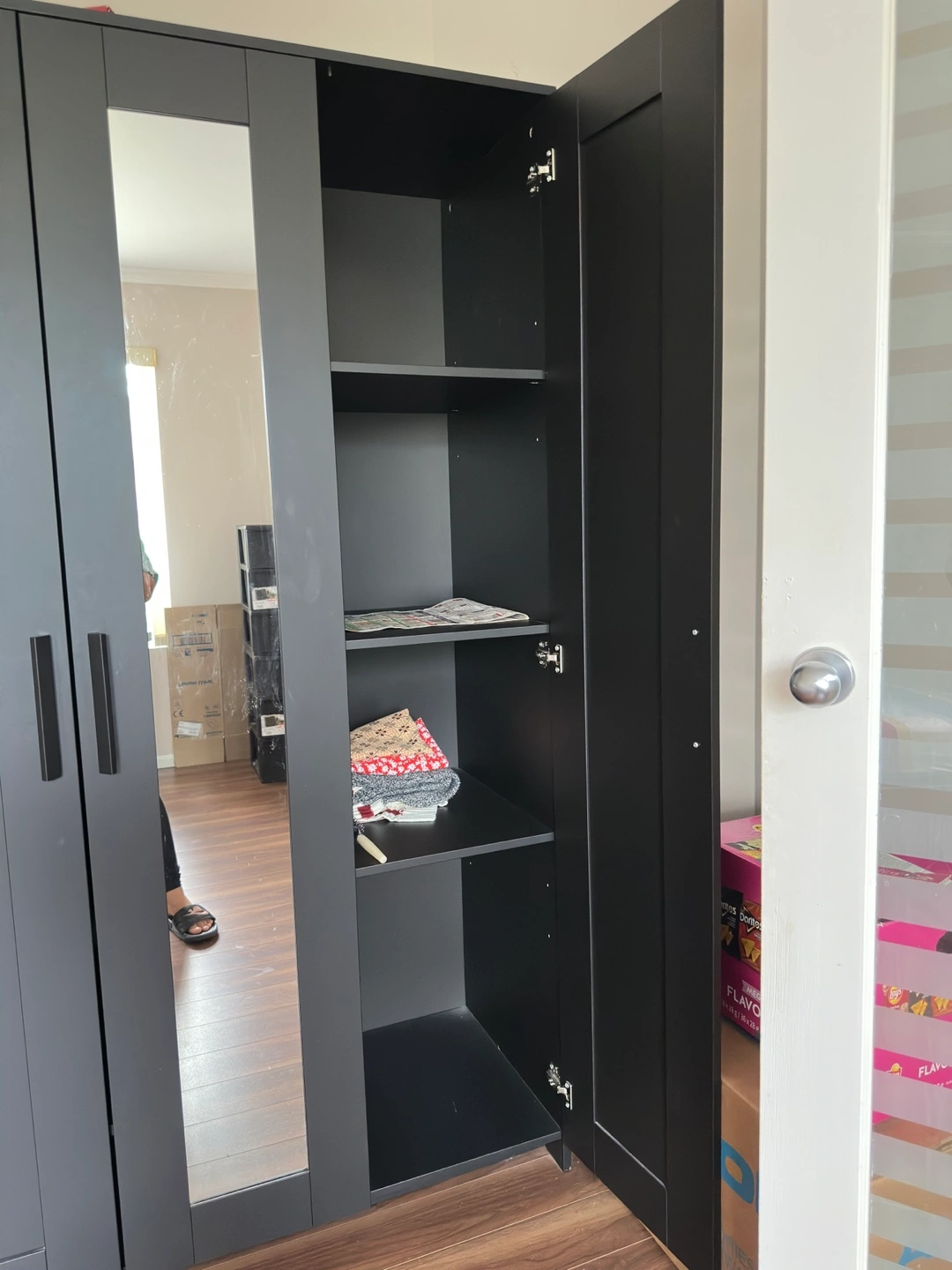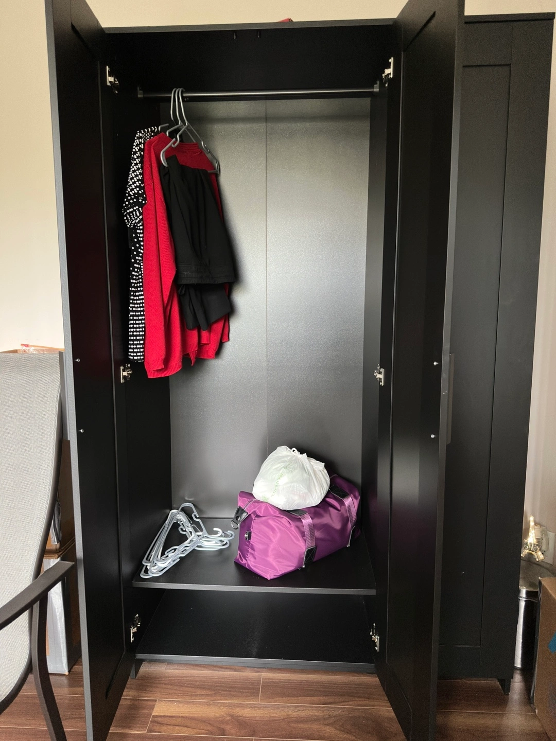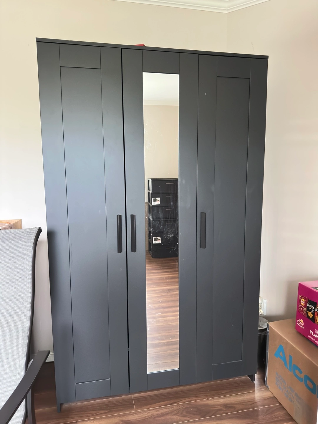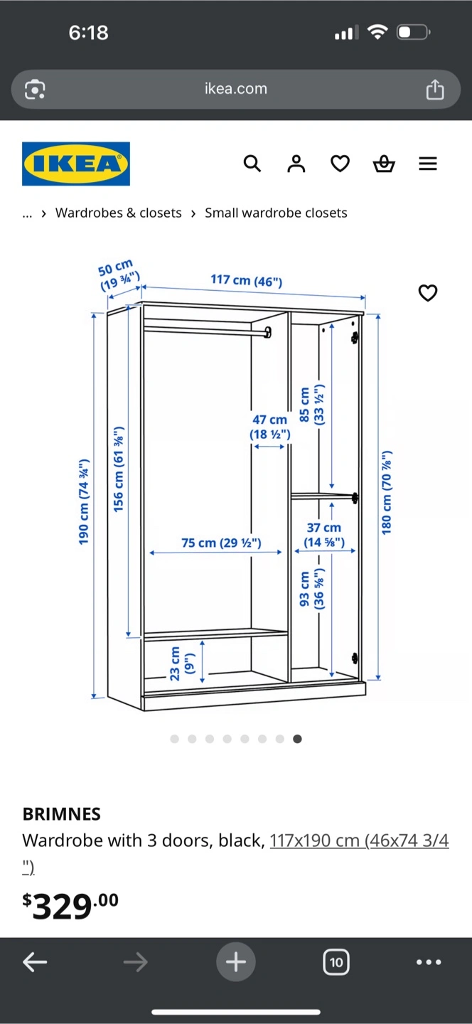 60Selling our IKEA 3-door wardrobe with built-in full-length mirror. • Sturdy and spacious • Hanging rail + shelves for storage • Neutral design fits any room • Easy to assemble/disassemble Price: $180 Pickup only. Located in Richmond Dimensions are in the picture. Questions like “Is this available?” will not be responded to.