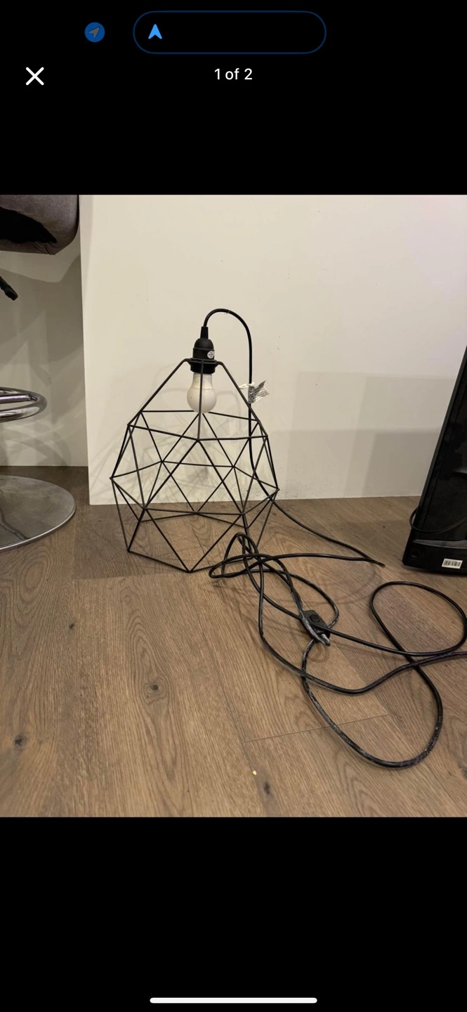 Black metal pendant lamp shade. Includes cord and plug & bulb.