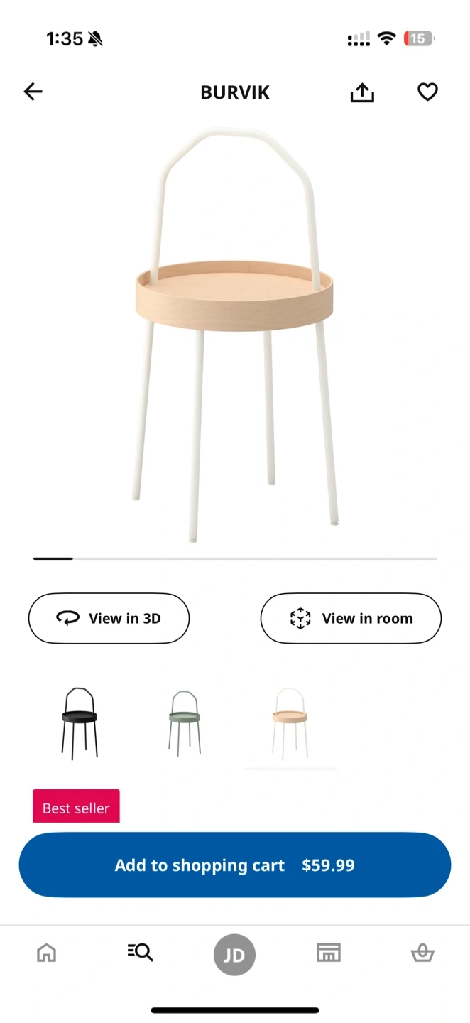 65Selling a cute IKEA BURVIK side table. It's in great condition and ready to add a touch of Scandinavian design to your space! Originally bought for $59.99 Ikea link - https://applink.ikea.com/tY8M9r9M4w--60340389--ca--en
