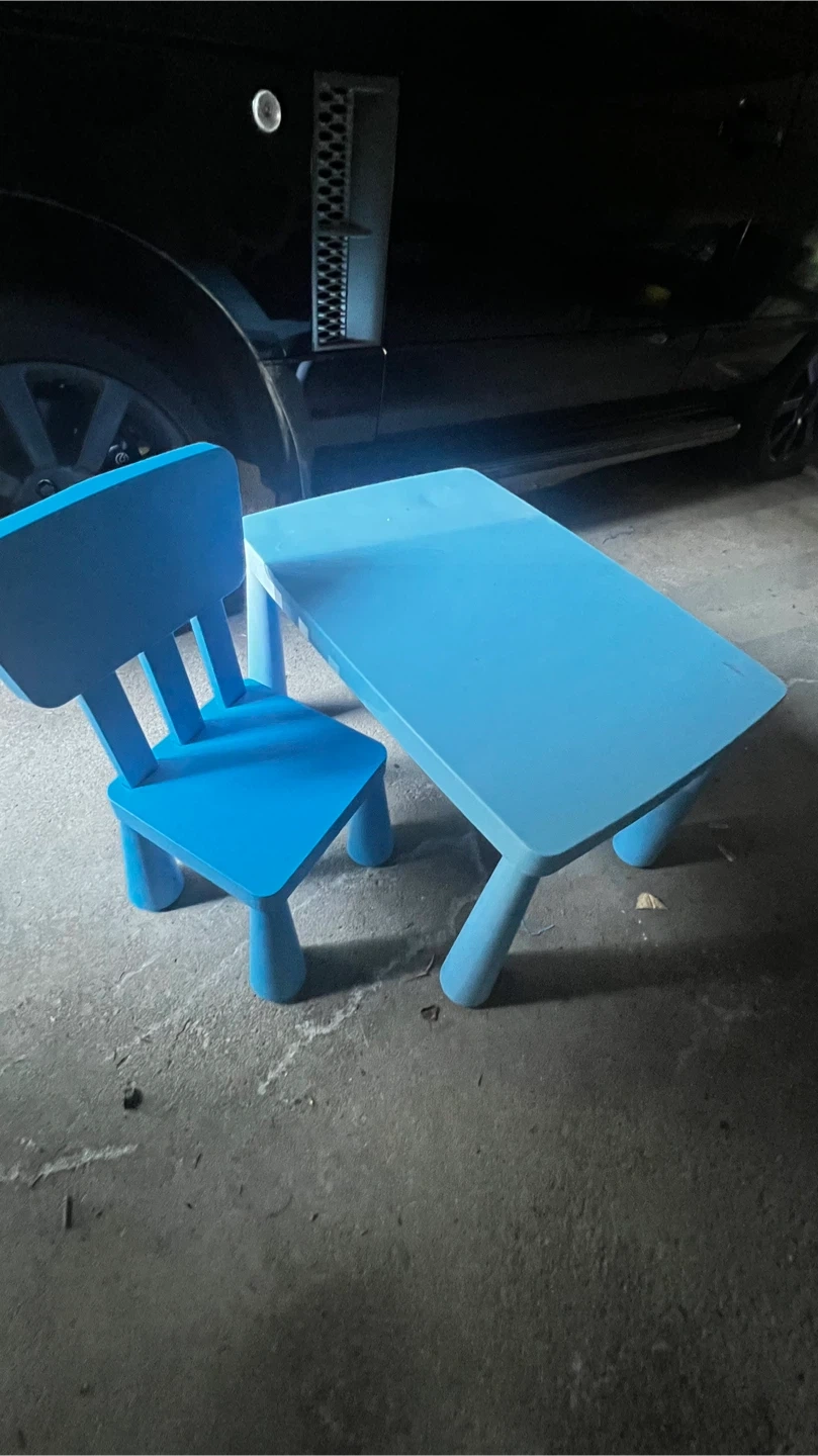 Vintage Metal Desk & Folding Chair Set - Aqua