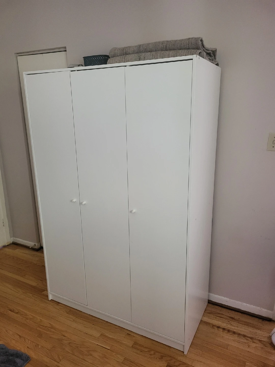 82Selling a white wardrobe with multiple doors. It's in good condition and offers plenty of storage space. Perfect for organizing your clothes and belongings!