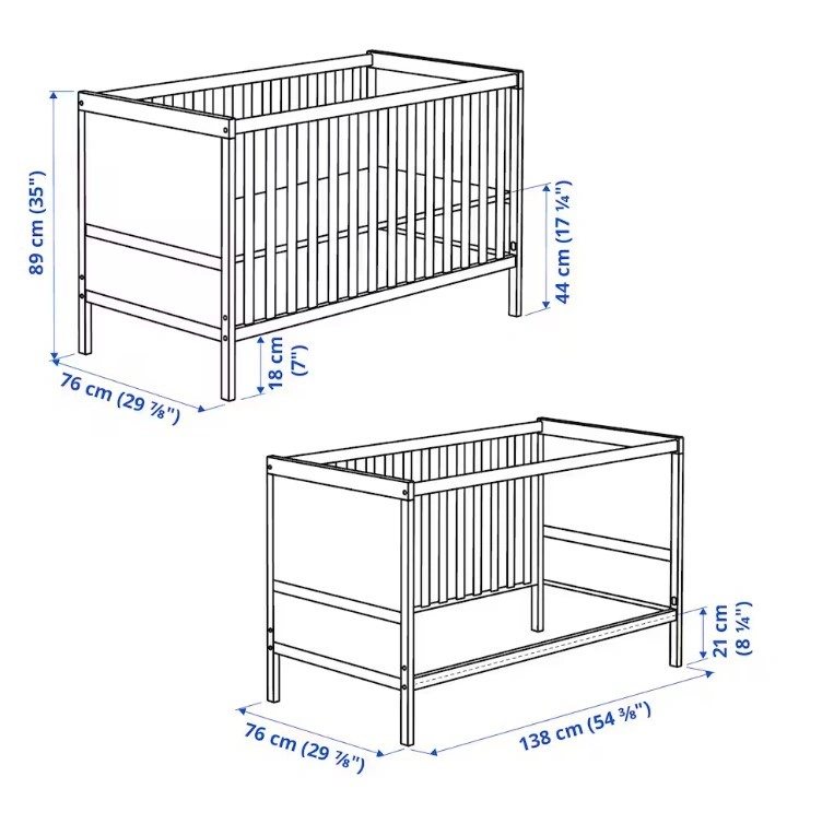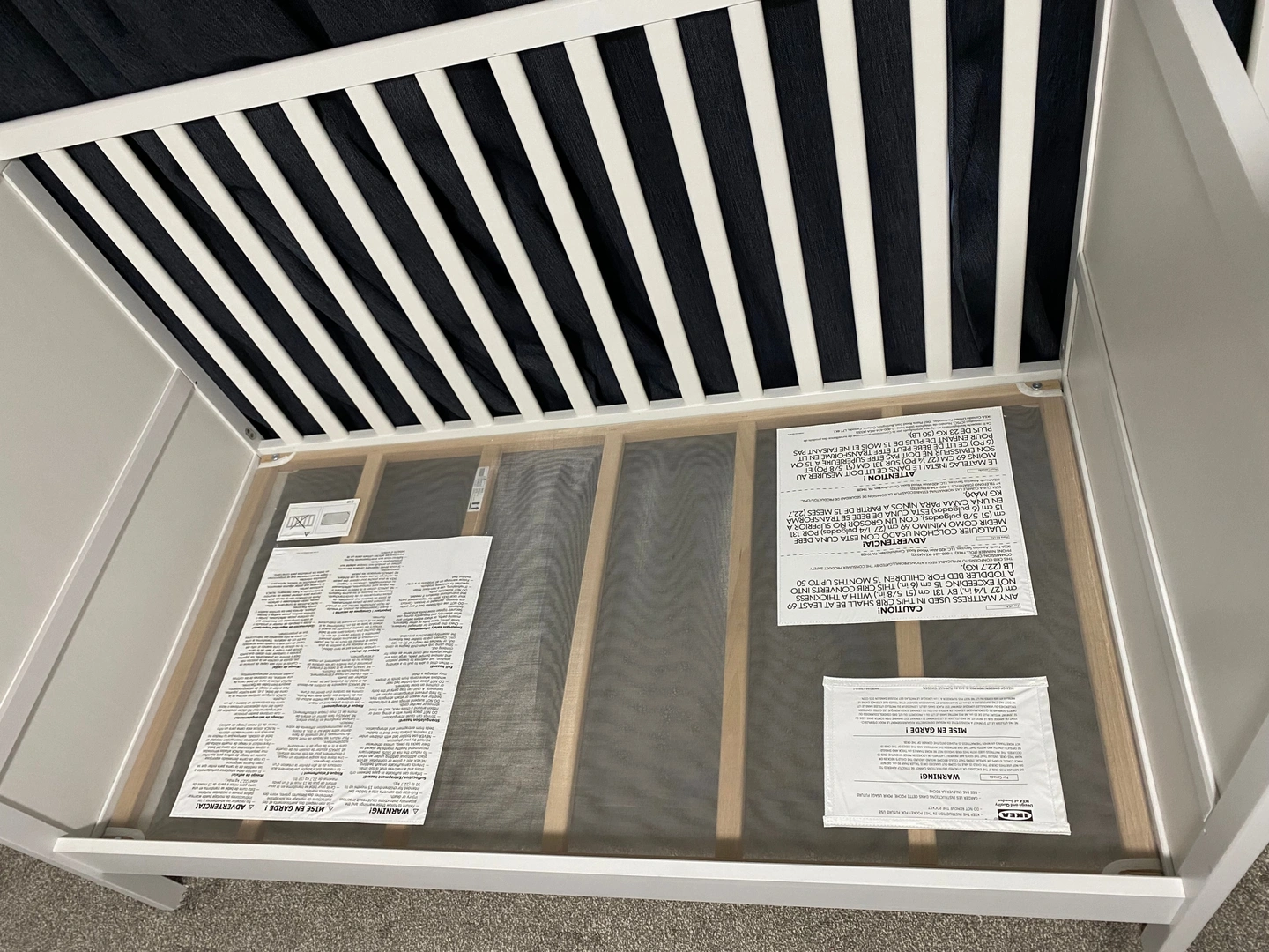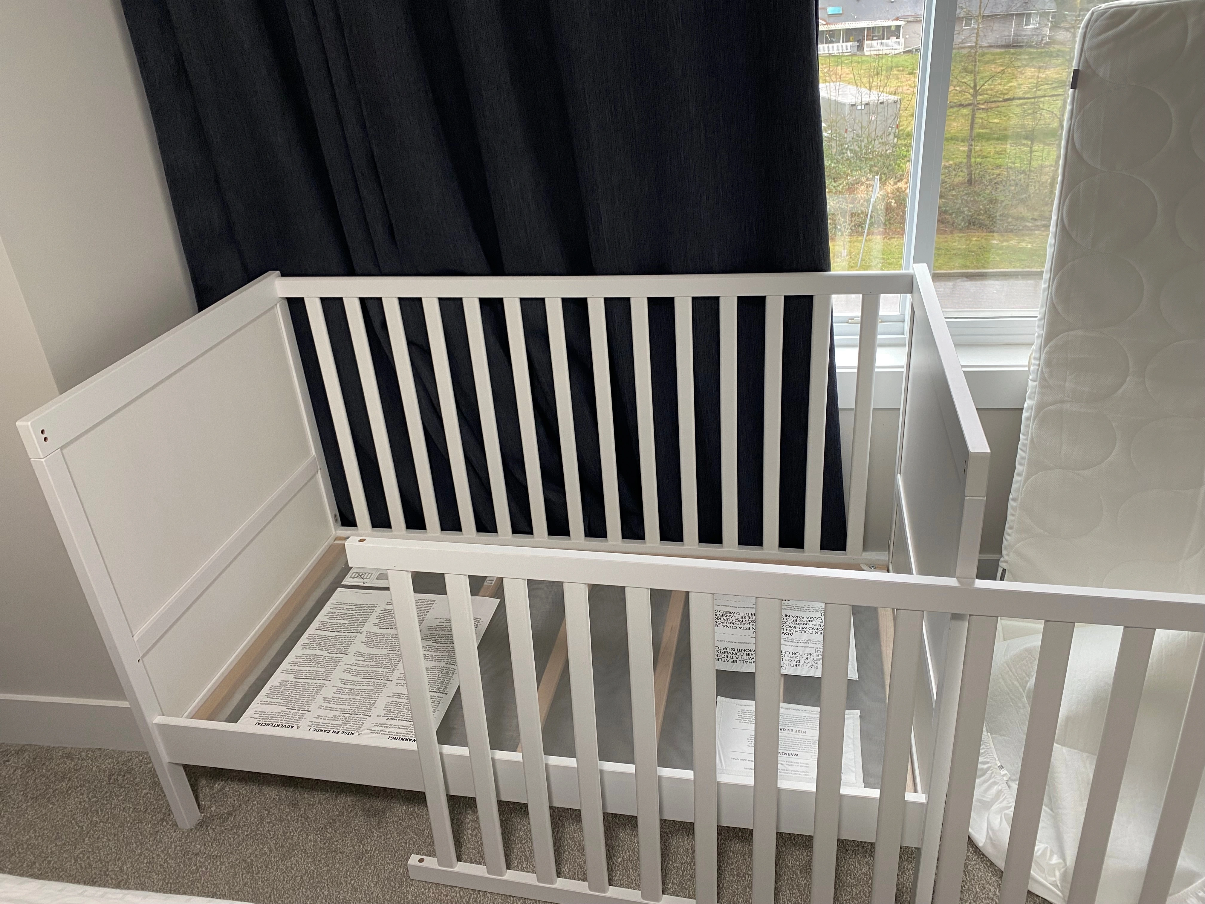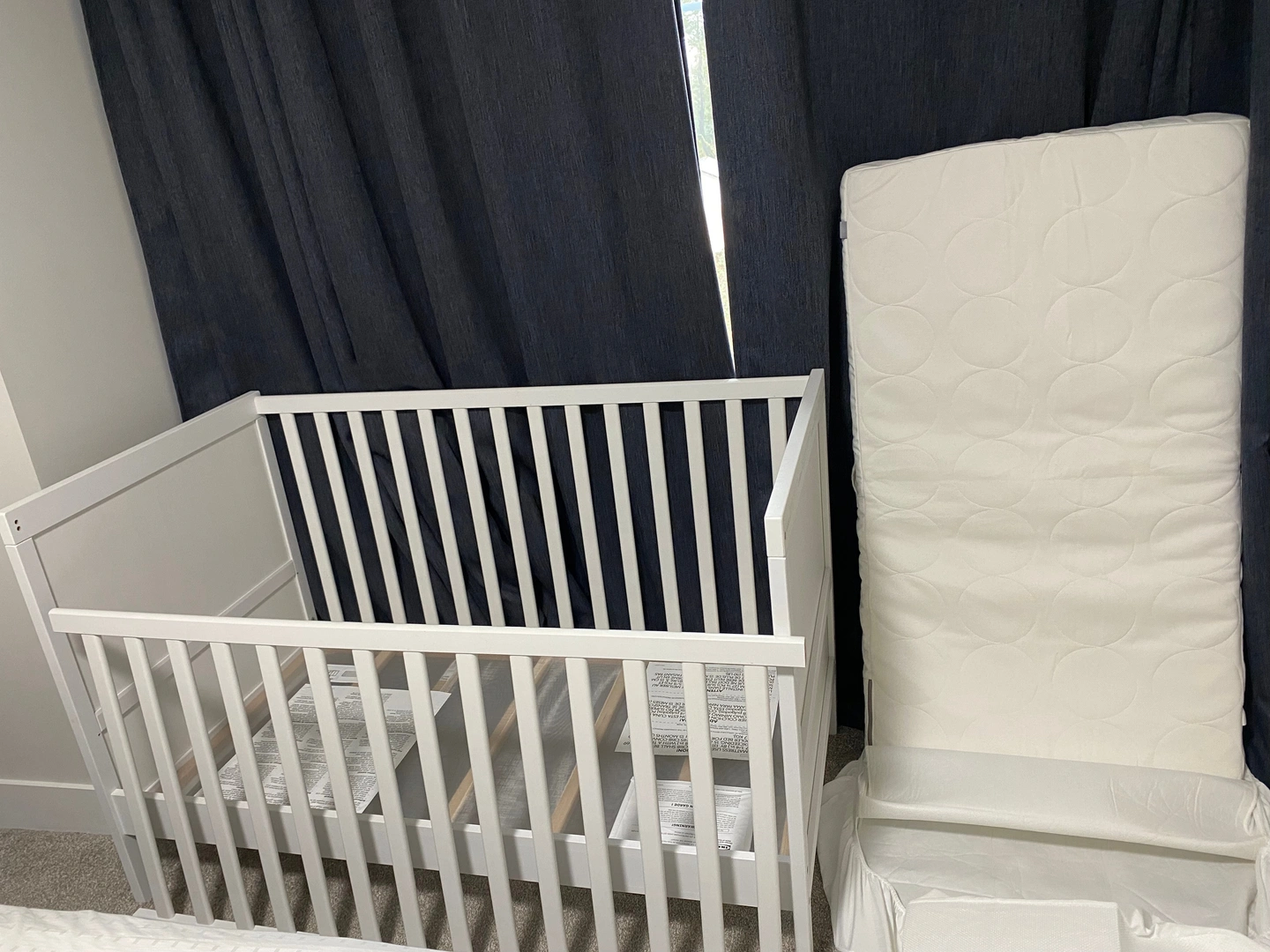 Ikea crib and mattress Crib - IKEA SUNDVIK Mattress - IKEA JÄTTETRÖTT (pocket spring mattress)