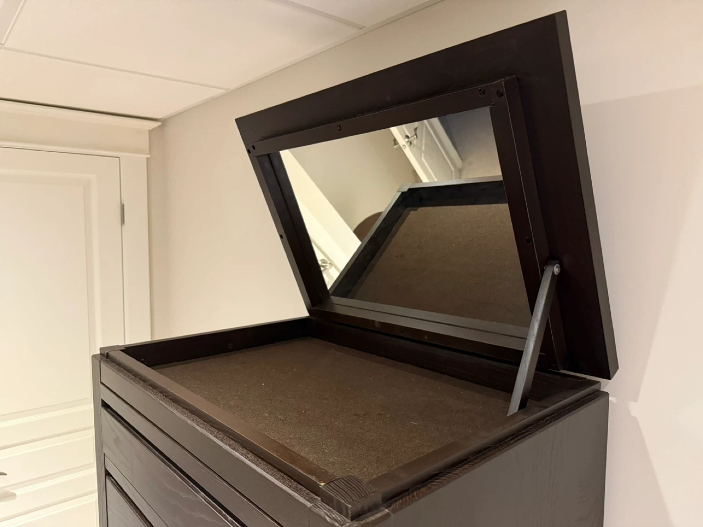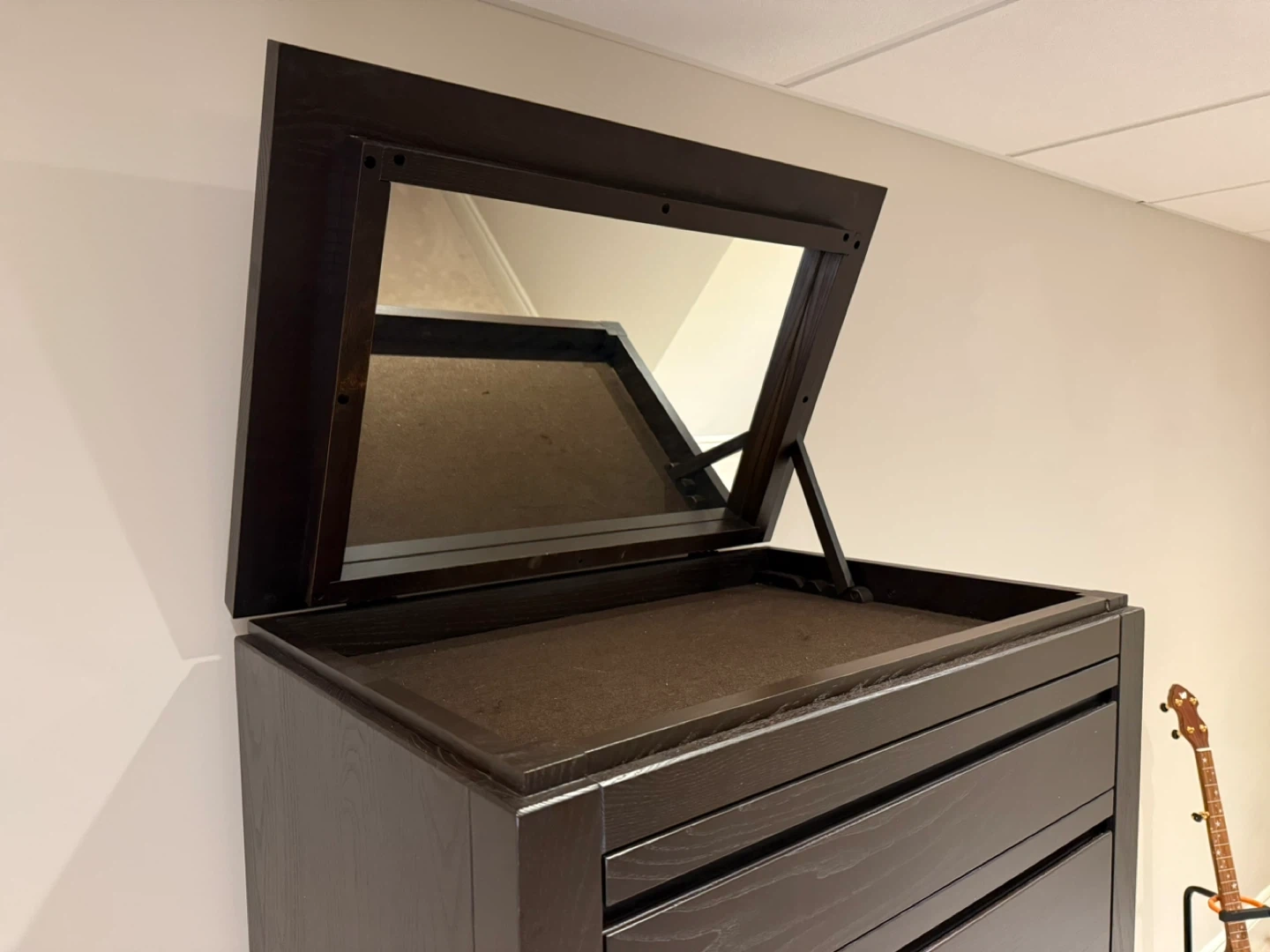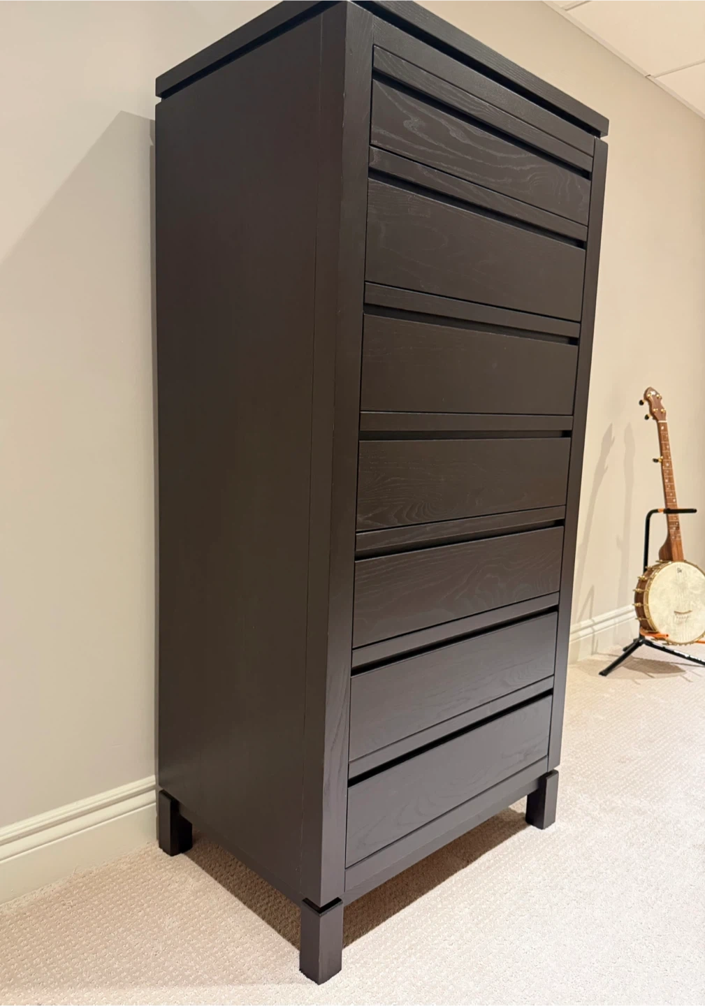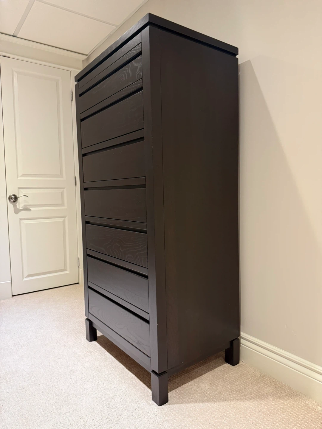 ‼️ d o w n s i z i n g ‼️ 📍 pick up near Greenbank / Hunt Club Selling an IKEA dark brown tall dresser with seven drawers. It also features a hidden mirror on top that flips open, perfect for jewelry. It's in excellent condition!! VERY heavy…this is a solid piece of furniture. You will need two strong abled bodies (the dresser is currently in our finished basement). 58 height 19 deep 28 wide 🚫 clean, smoke-free home / no pet hair Thank you for your interest! Merci de votre intérêt !