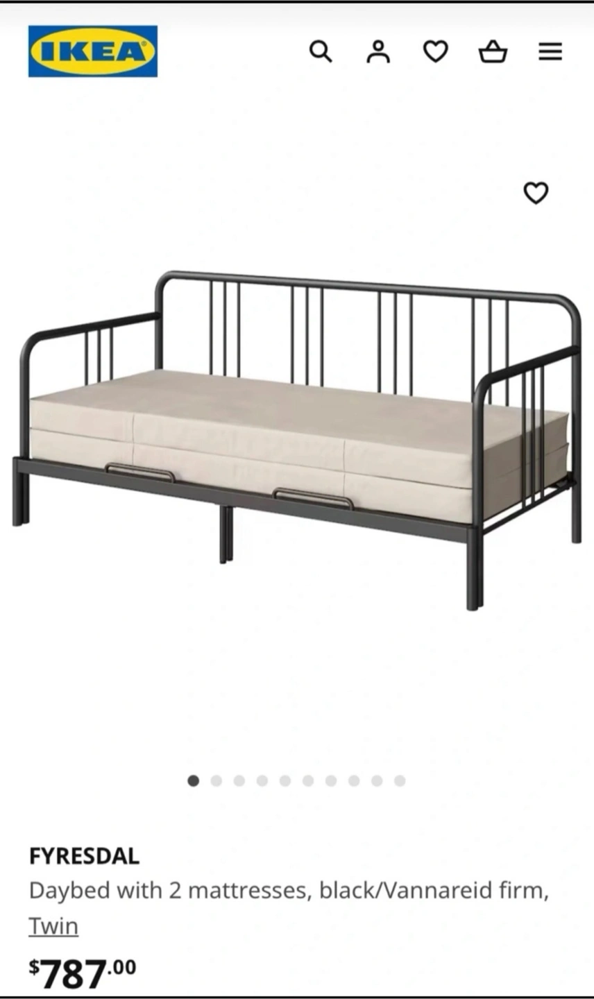 163Downsizing! Selling a guest room IKEA FYRESDAL daybed metal in black! Turns into a king size bed easily .See dimensions on 2nd picture two IKEA foam firm mattresses washable/zippered covers like new and is in great condition Is also disassemble for easy transport( you can find the instructions on IKEA website for reassembly) Pick up only so made transport arrangements before any offer Location is Brampton near main intersection Steeles Av W/ Chinguacousy Rd. e-transfer to hold Not DELIVERING Is a second hand item in bargain 😳