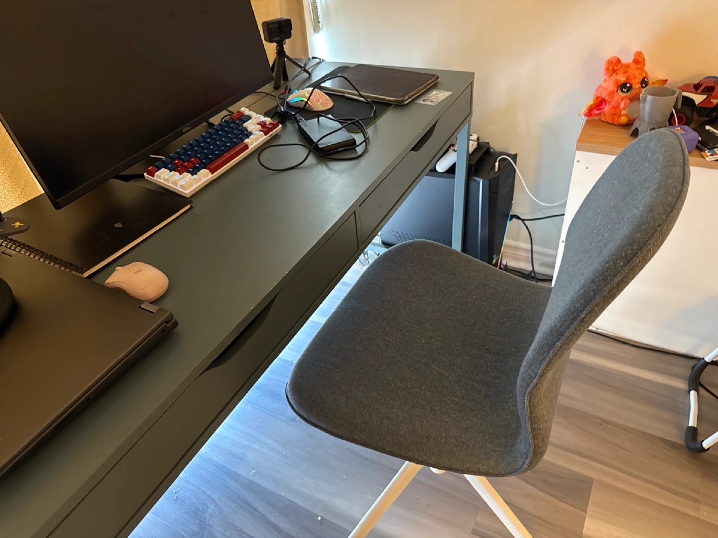 Selling a desk and chair set, perfect for a home office or study space! The desk features a sleek design with drawers for storage. The chair is comfortable and supportive, making it ideal for long hours of work or study. Both are in great condition and ready for a new home!