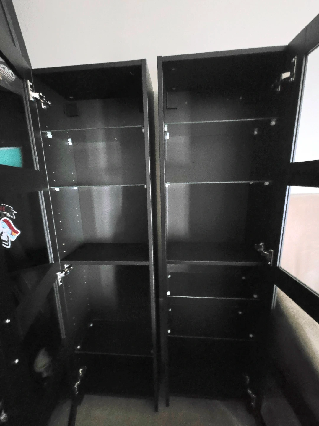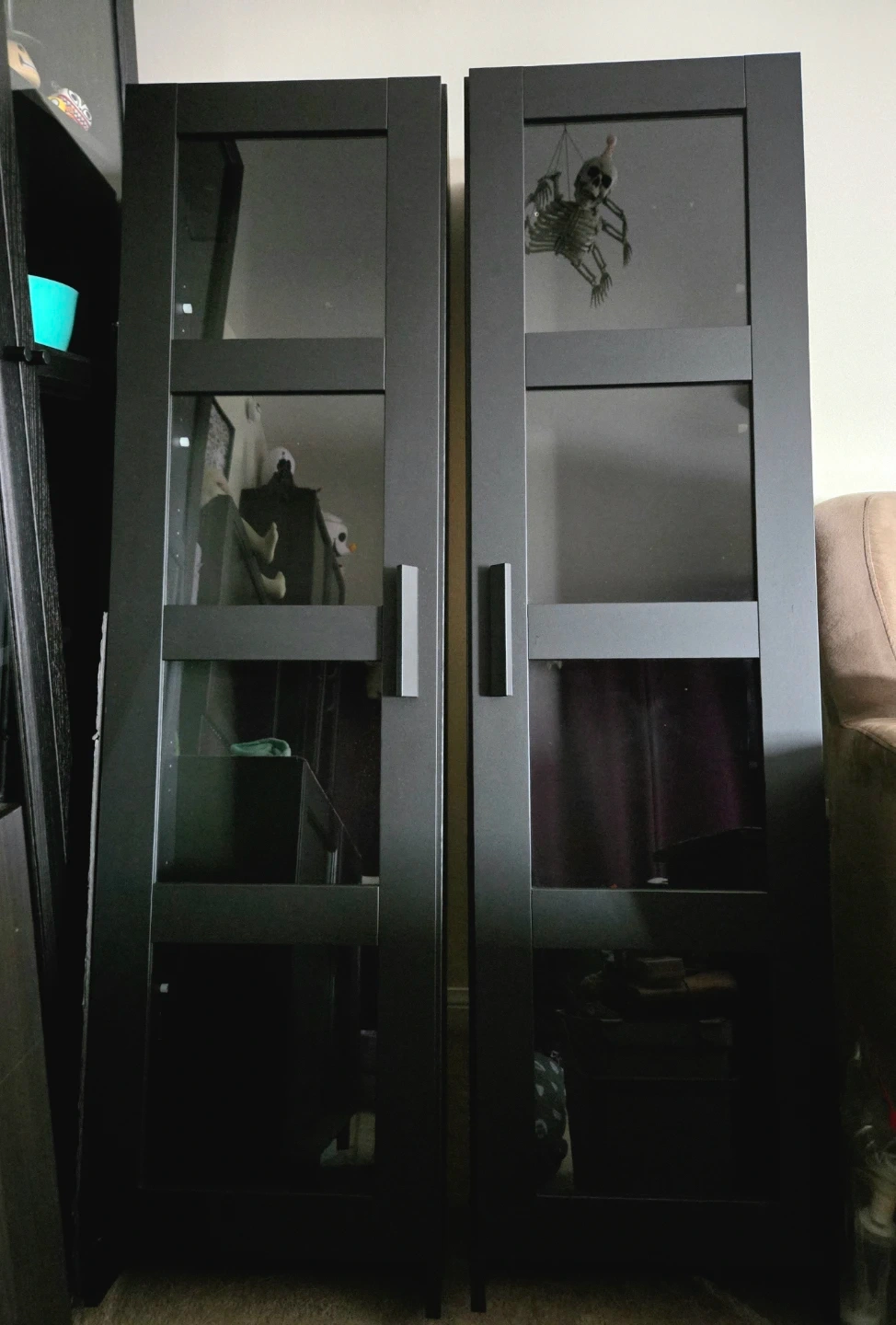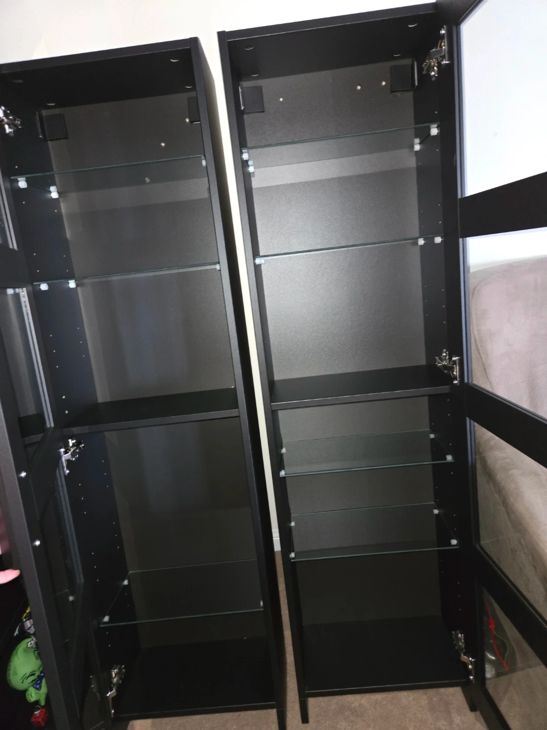 0I'm selling 2 black IKEA display cases with glass doors! They are in great shape and ready for a new home. Perfect for displaying your favourite books or collectibles. each cabinet has 4 glass shelves $65 each or both for $100 smoke free, pet free home hespeler (poplar/dawn area) pick up only