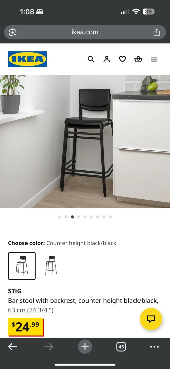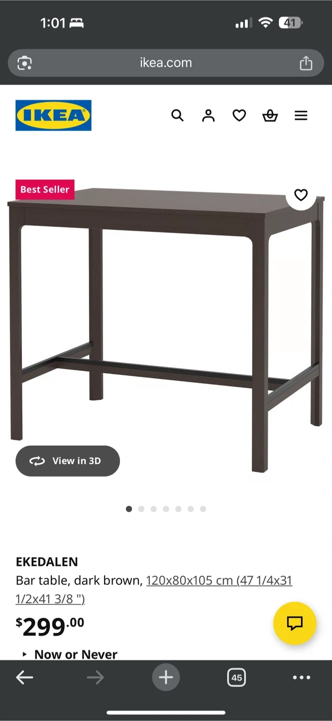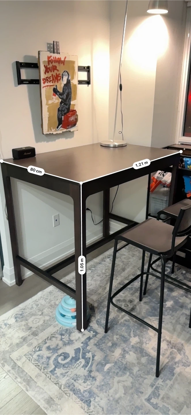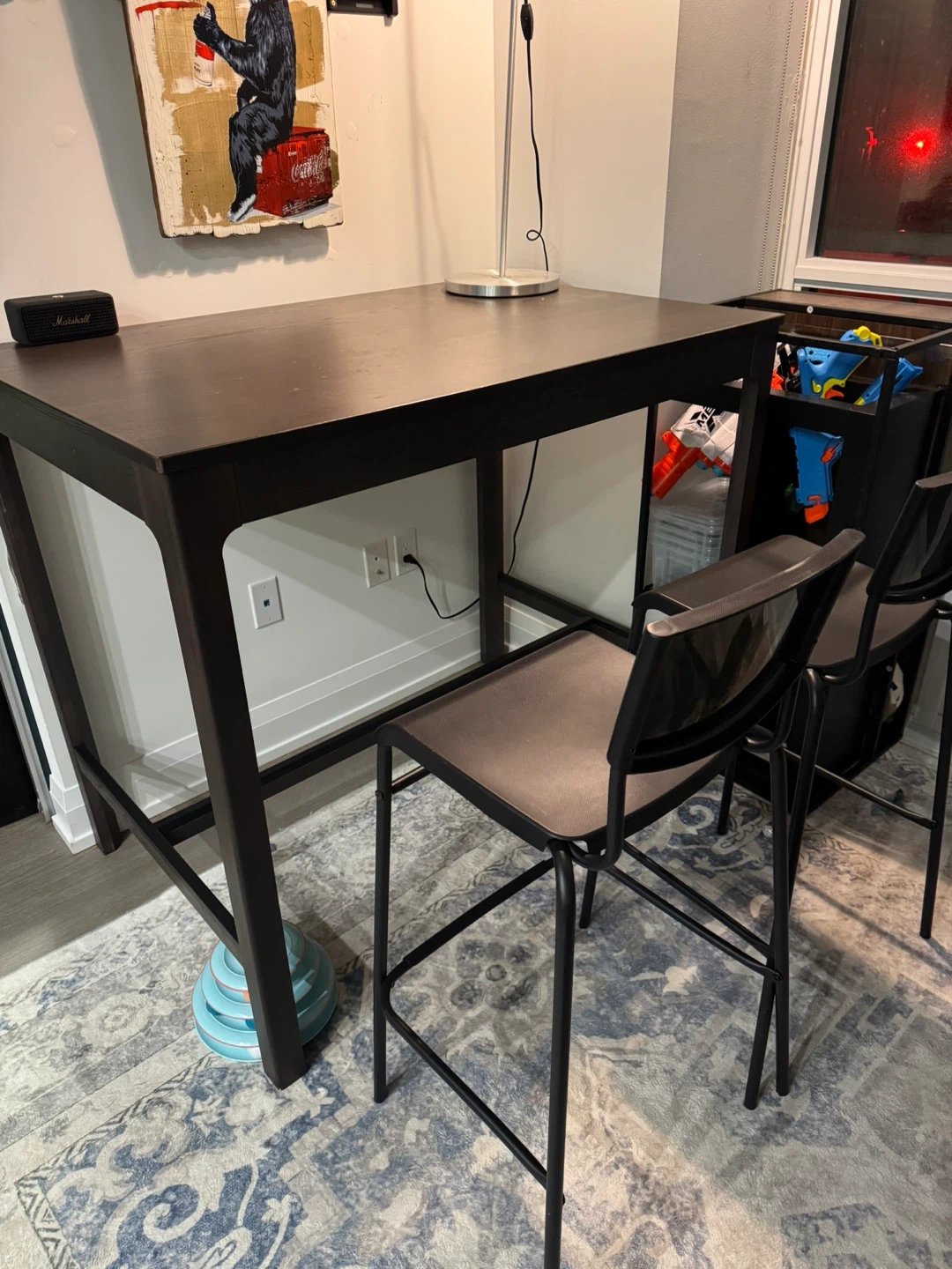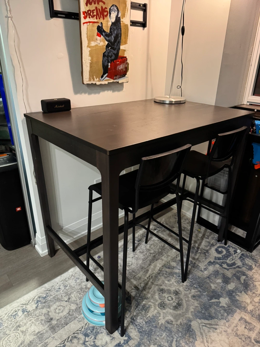 125Selling a set of IKEA EKEDALEN bar table in dark brown two IKEA STIG chairs! It's in great shape and would be perfect for a kitchen or dining area. The dimensions are 120x80x105 cm (47 1/4x31 1/2x41 3/8 "). Pick up only. Ask for details.