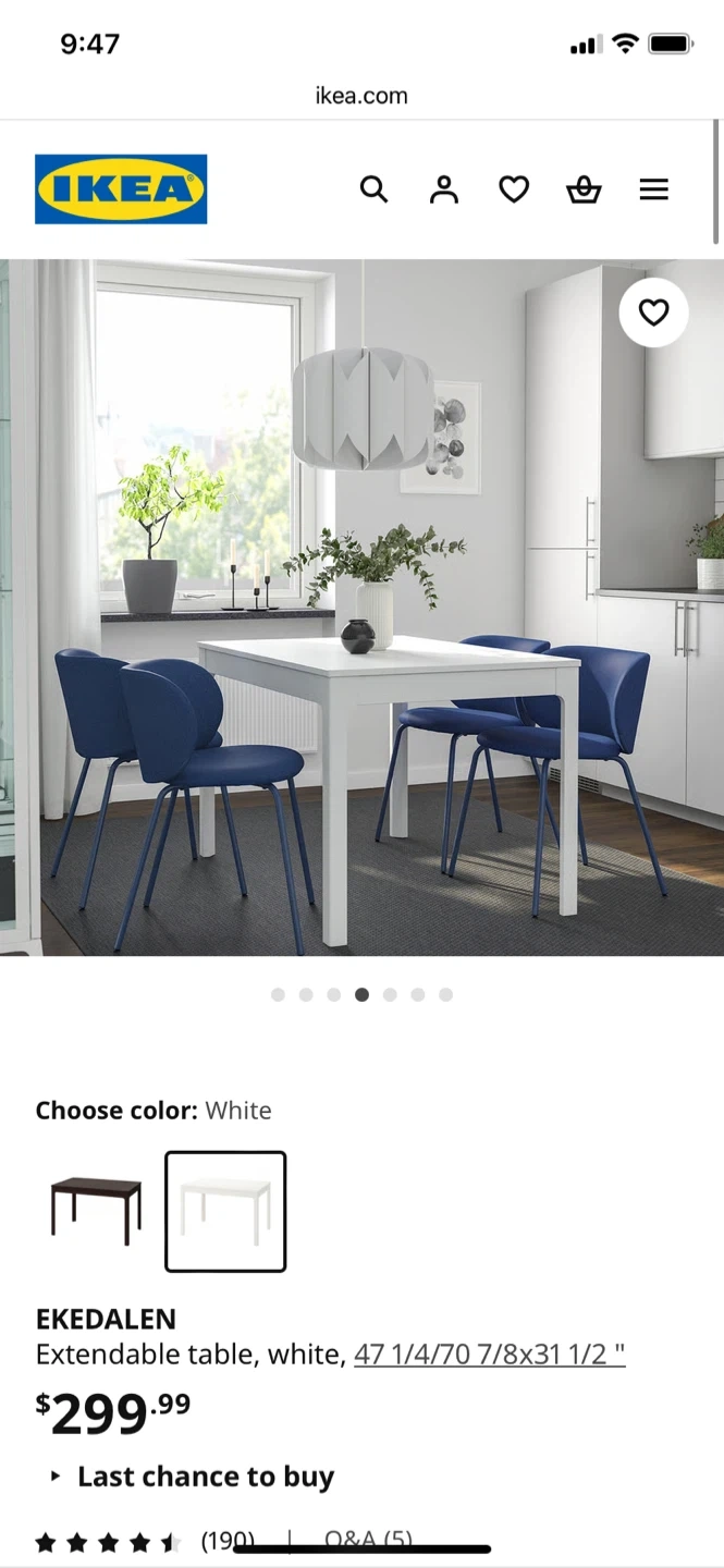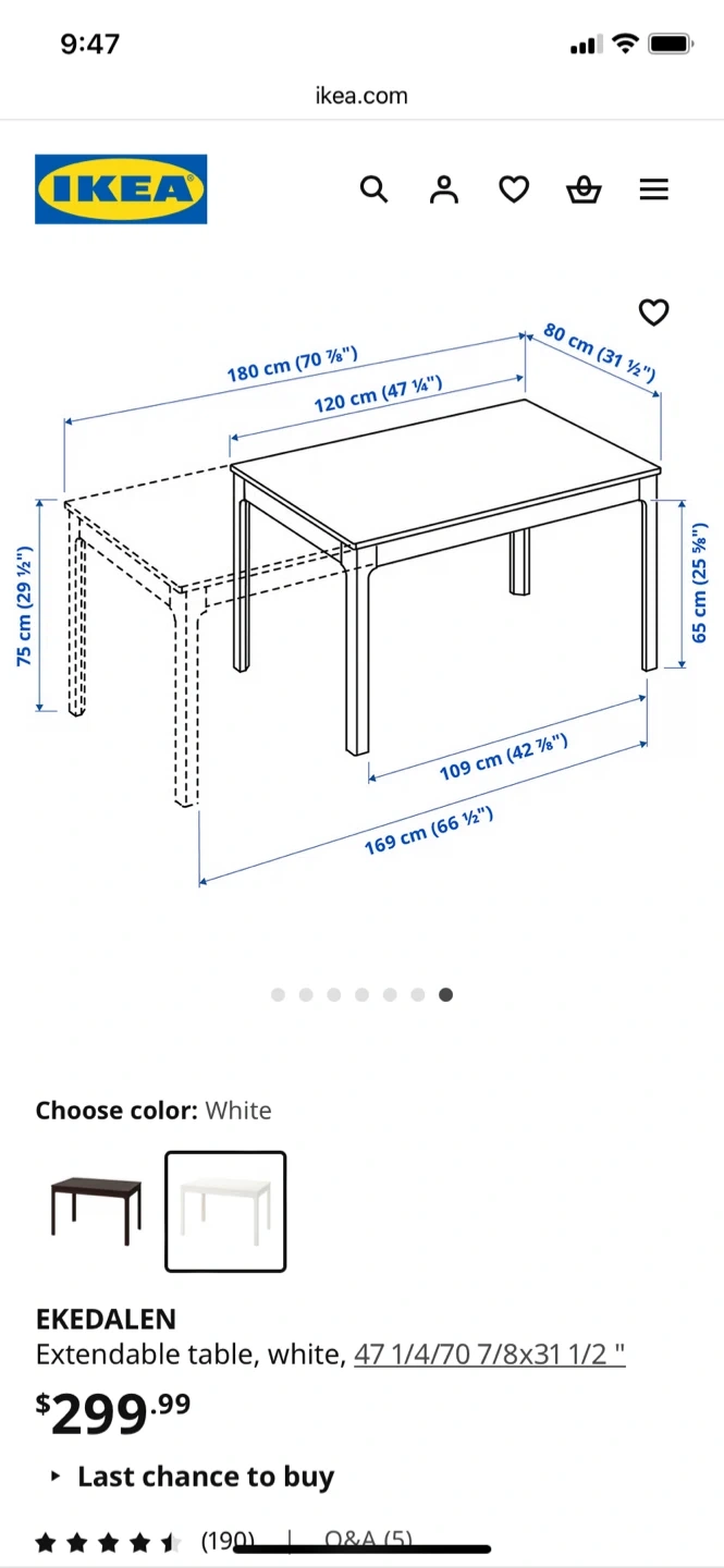 10Table: EKEDALEN Extendable table * Colour: White * Seats: 4-6 The table costs 299.99 USD, which is around 408 CAD. bought each chair for 90+tax CAD.