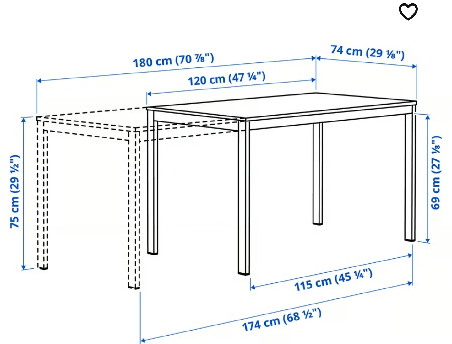68Selling a white extendable dining table from IKEA! It's in great shape and perfect for small spaces or hosting extra guests. The table can be extended to provide more surface area when needed. only used for 2 months. It's like new ! (NO negotiable) Dimensions: - 120 cm (47 1/4") - Extends to 180 cm (70 7/8") - Width: 74 cm (29 1/8") - Height: 75 cm (29 1/2") the location is in Mississauga. can deliver with extra if it's close by.