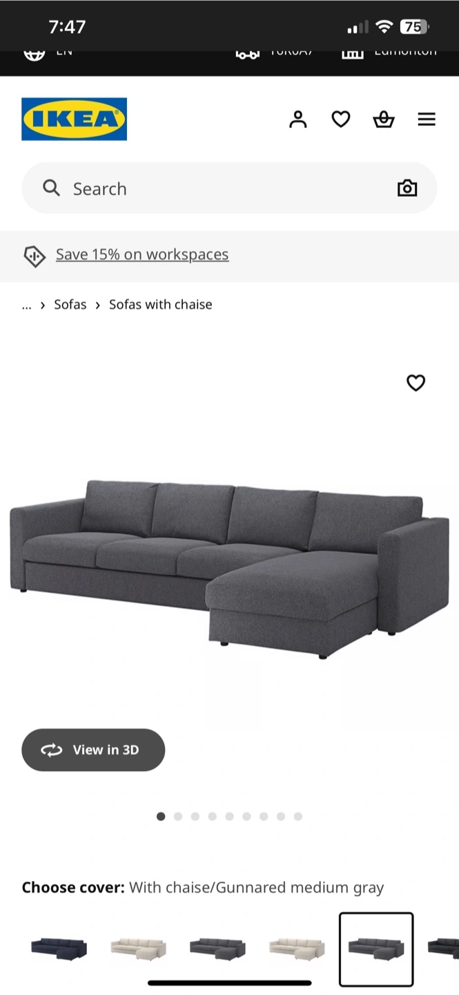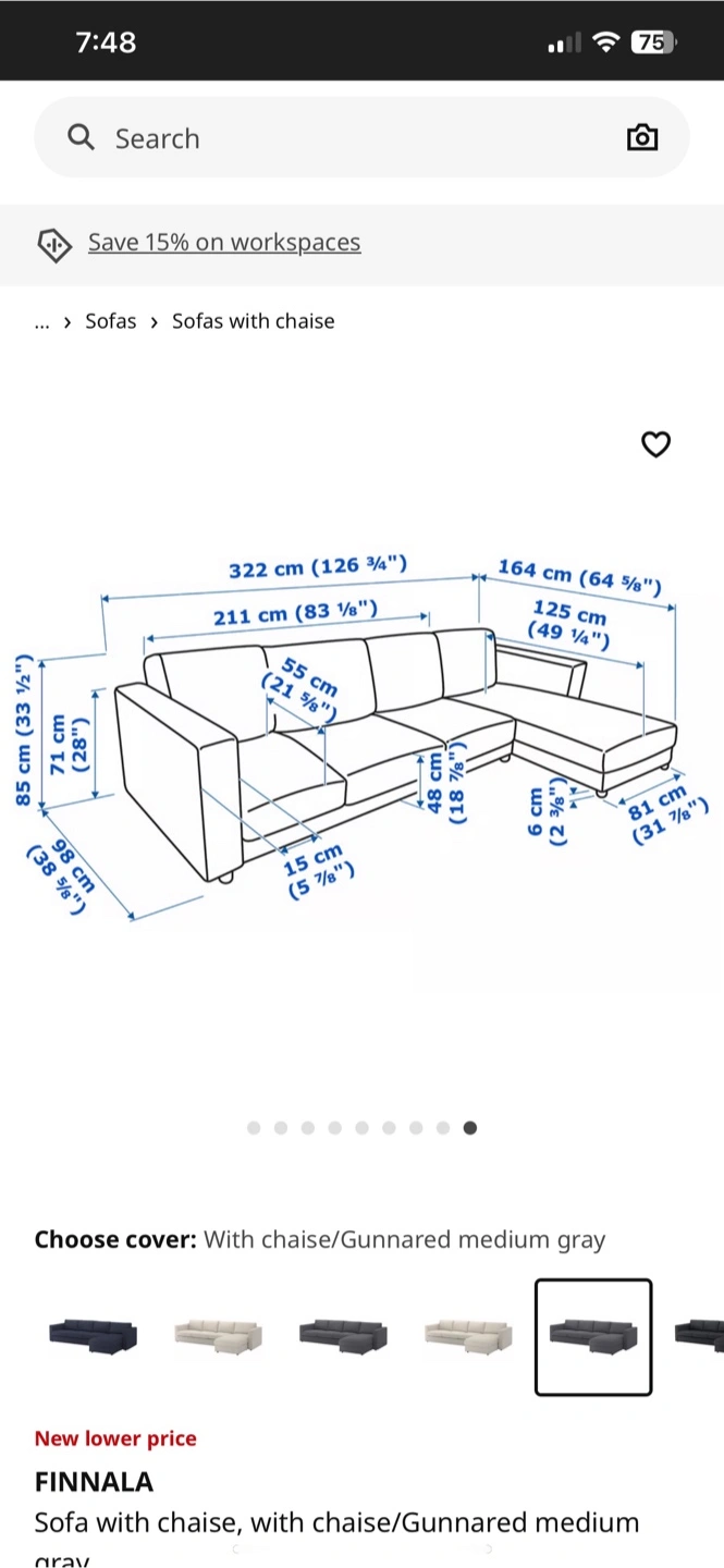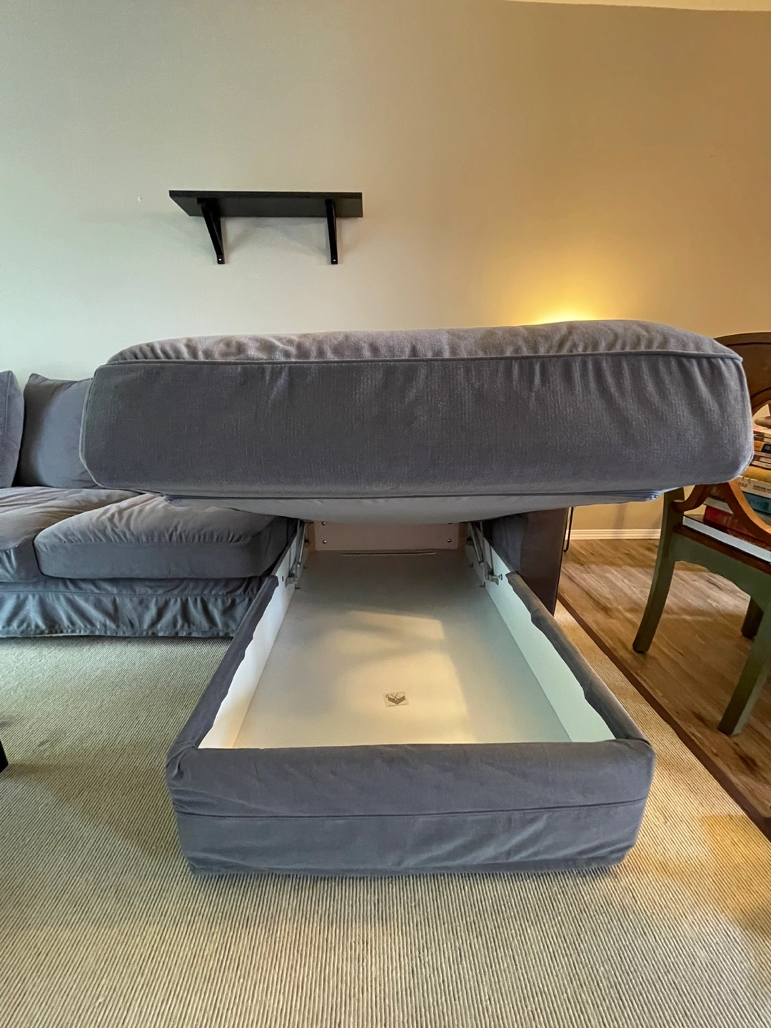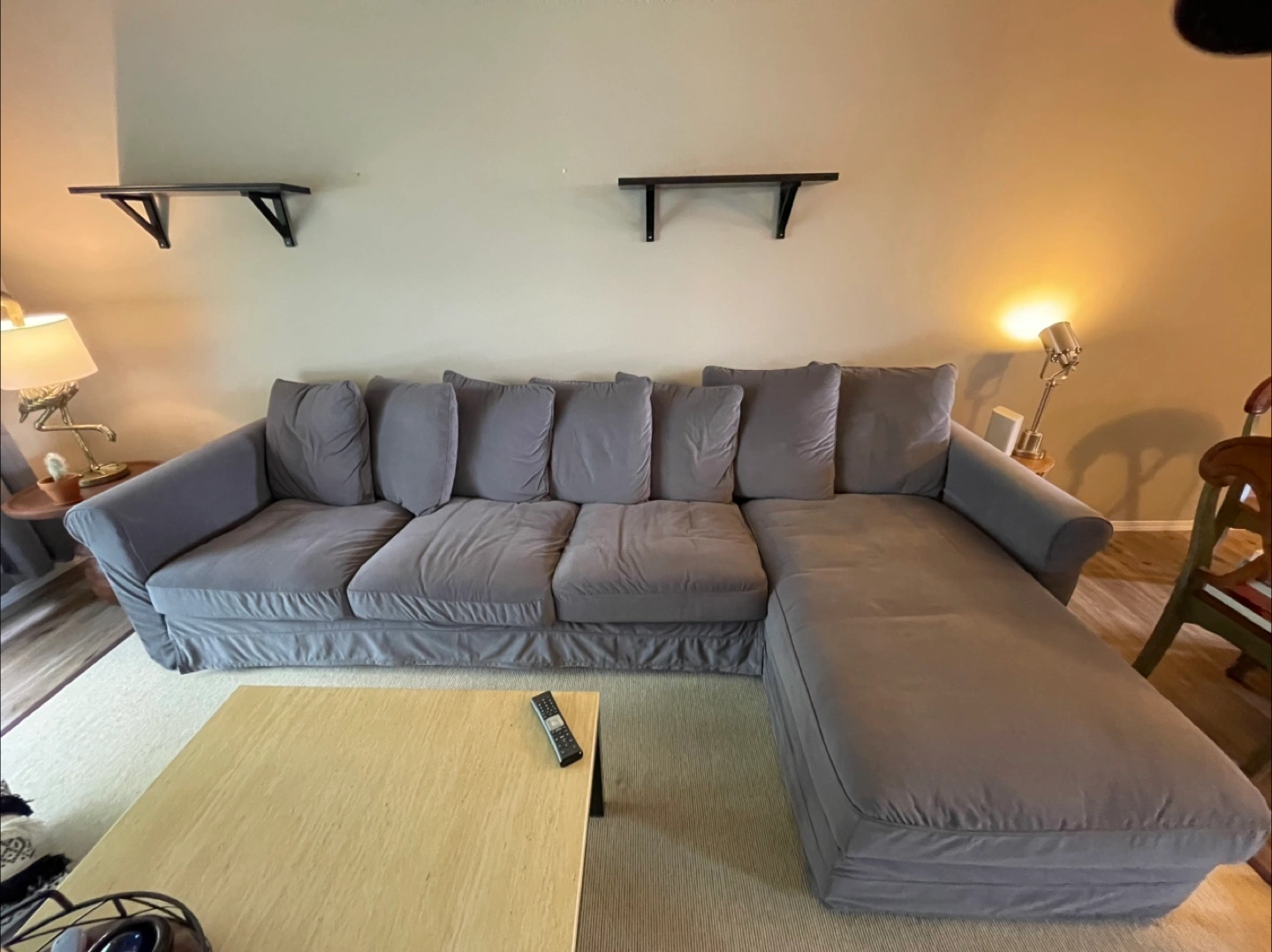 0Selling a comfy IKEA FINNALA sofa with chaise in Gunnared medium gray! It's in great shape and ready for a new home. Dimensions: - Total width: 322 cm (126 3/4") - Depth of chaise: 164 cm (64 5/8") - Height: 85 cm (33 1/2") It also has a handy storage compartment under the chaise! I will not deliver- buyer must pick it up