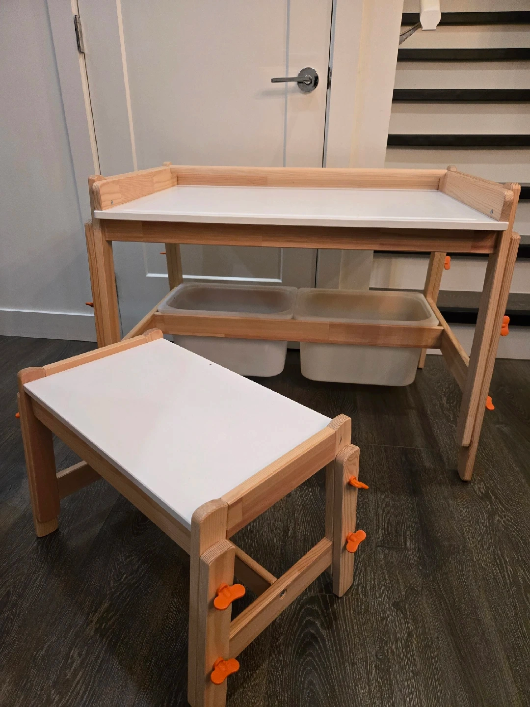 10Selling an IKEA FLISAT child's bench. It's adjustable so it can grow with your child! The bench is in excellent condition and ready for a new home. Comes with Table, bench/chair and 2 white bins for storage. take all for $80 pick up Willoughby area