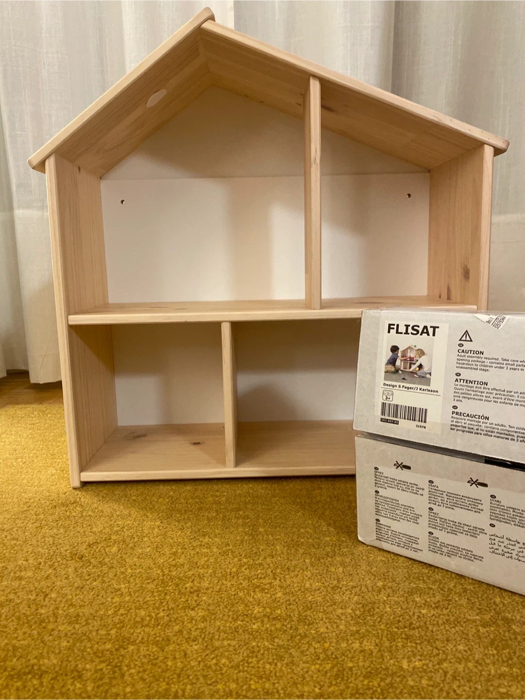 Selling an IKEA FLISAT dollhouse/wall shelf! It's in great shape and ready for a new home. Perfect for playtime or displaying your favourite items. Its natural wood finish blends seamlessly with any decor. In like new condition with the original box :)