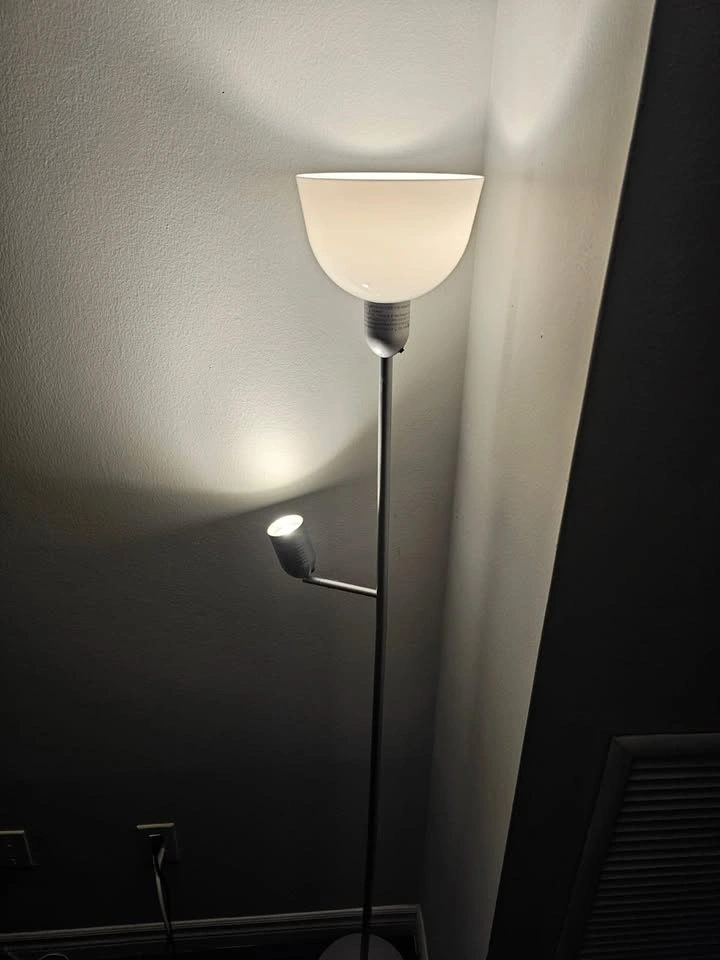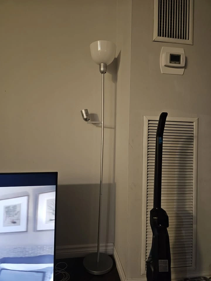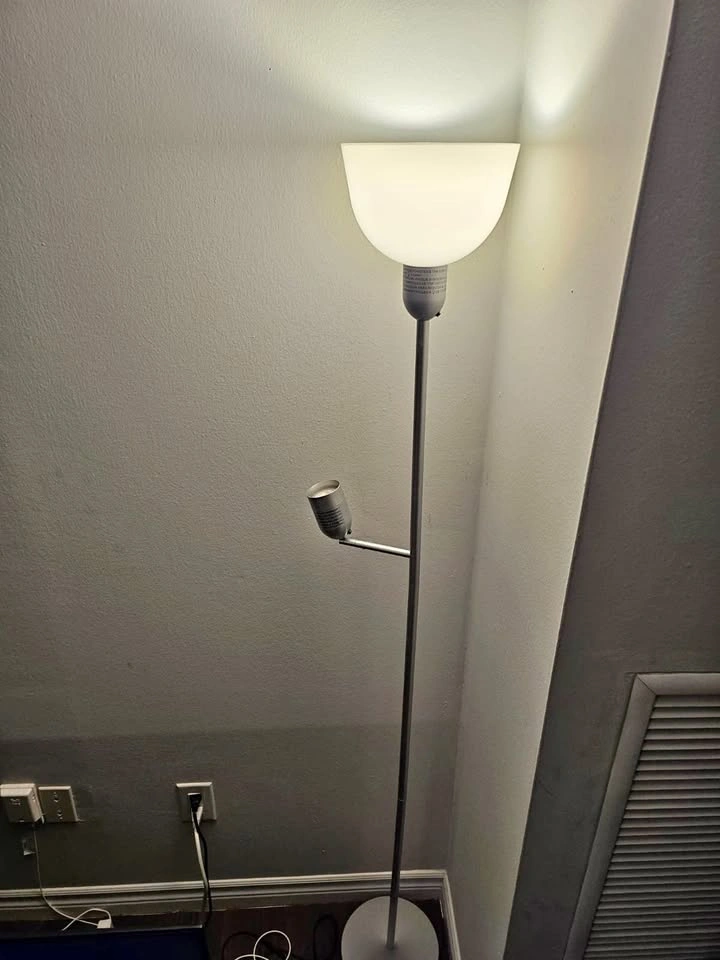 71IKEA Floor Lamp β Dual Light (Main + Reading Lamp) π Height: 175 cm (β 69") βͺ Base diameter: 24 cm (β 9.5") Modern silver floor lamp with two lights β main top light and adjustable reading light. β¨ Condition: Like new, gently used and fully functional. Perfect for living room, office, or bedroom. π° Price: CAD $25