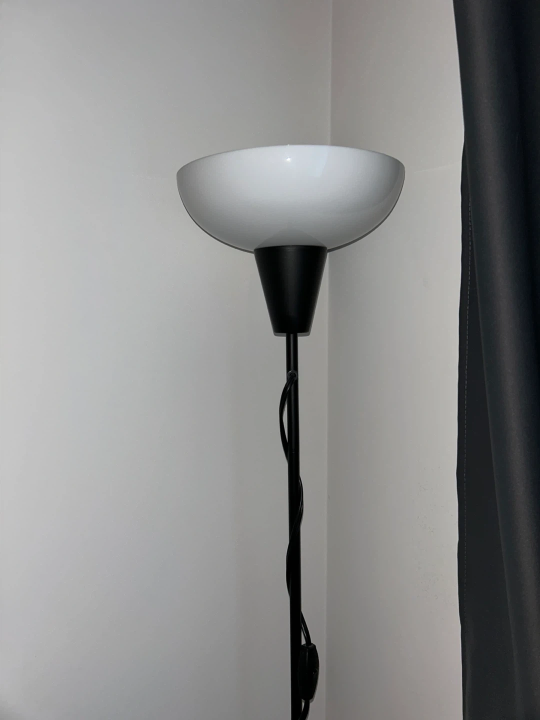 Here's a sleek standing lamp with a black base and a white shade. It's in great shape and as good as new, bought couple months ago