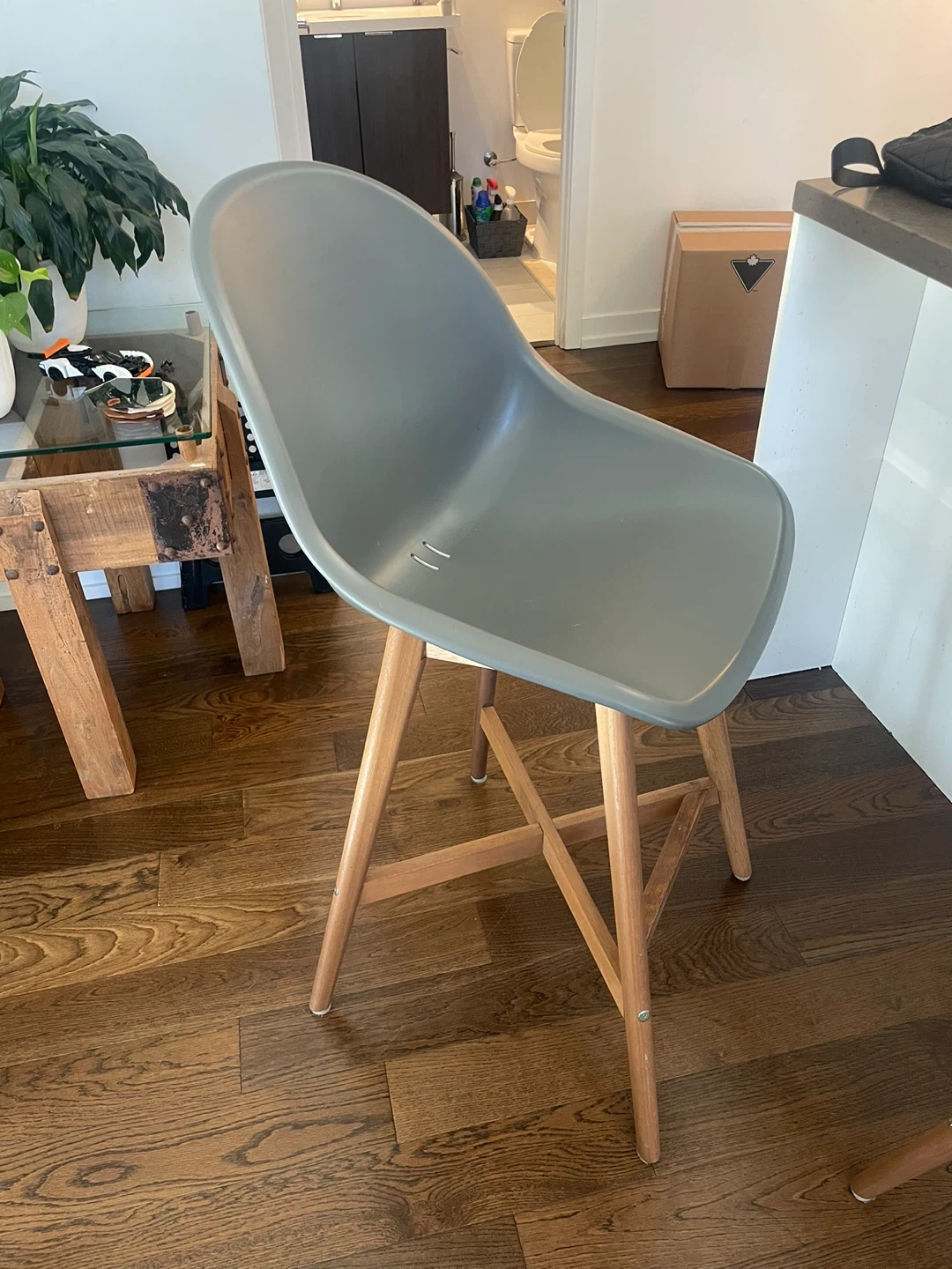 10Selling an IKEA bar stool! It features a grey seat and wooden legs. Perfect for adding a modern touch to your kitchen or bar area. In great condition! $150 for both. Must be sold in a pair