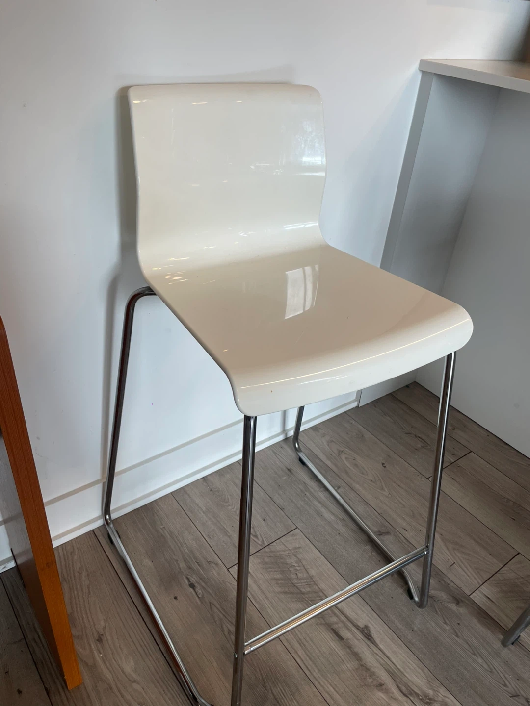 Selling a used IKEA Franklin bar stool in good condition! This stool features a white seat and a chrome frame, perfect for adding a modern touch to your kitchen or bar area. It's sturdy and comfortable, great for everyday use. I have 2! Make an offer for both.