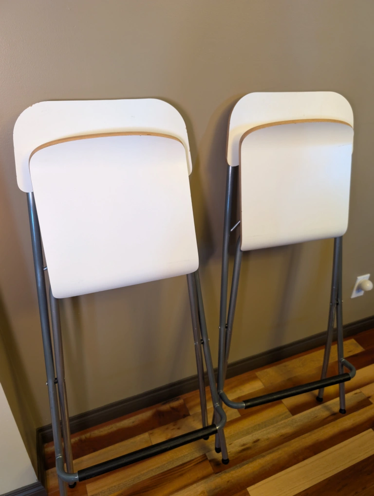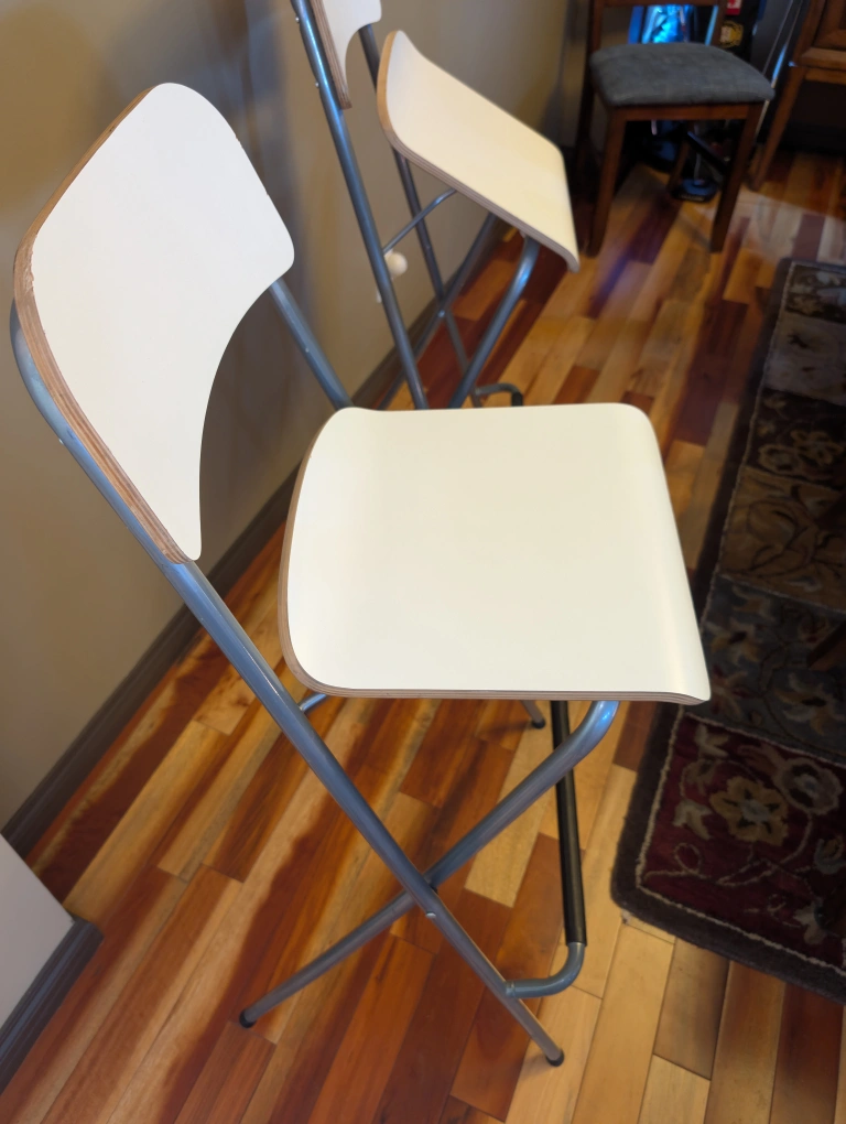 30Price quoted for a pair of Ikea Franklin bar stools in white and silver. They're in great shape and ready to find a new home. At Ikea they are $50 each - new. The model number is 101.992.17. These stools can support up to 100 kg (220 lb).