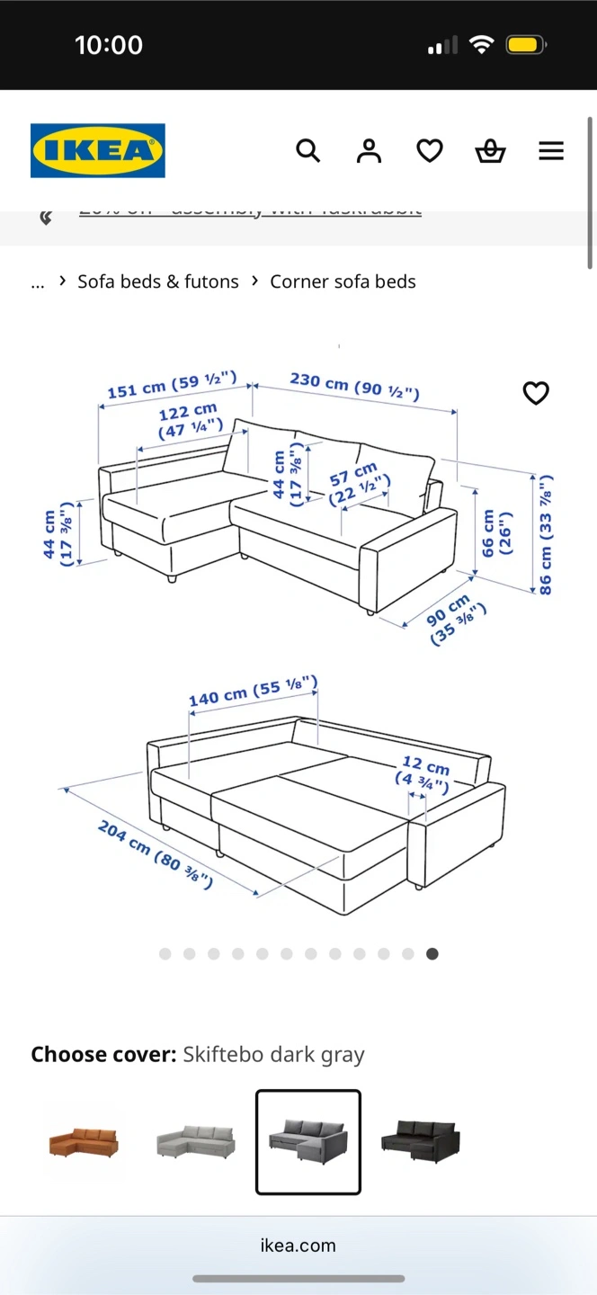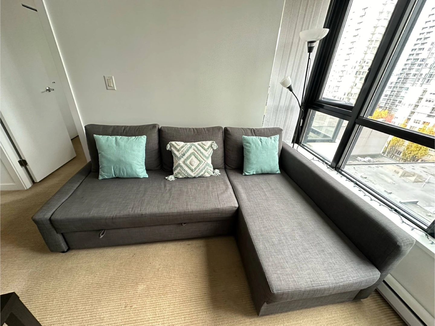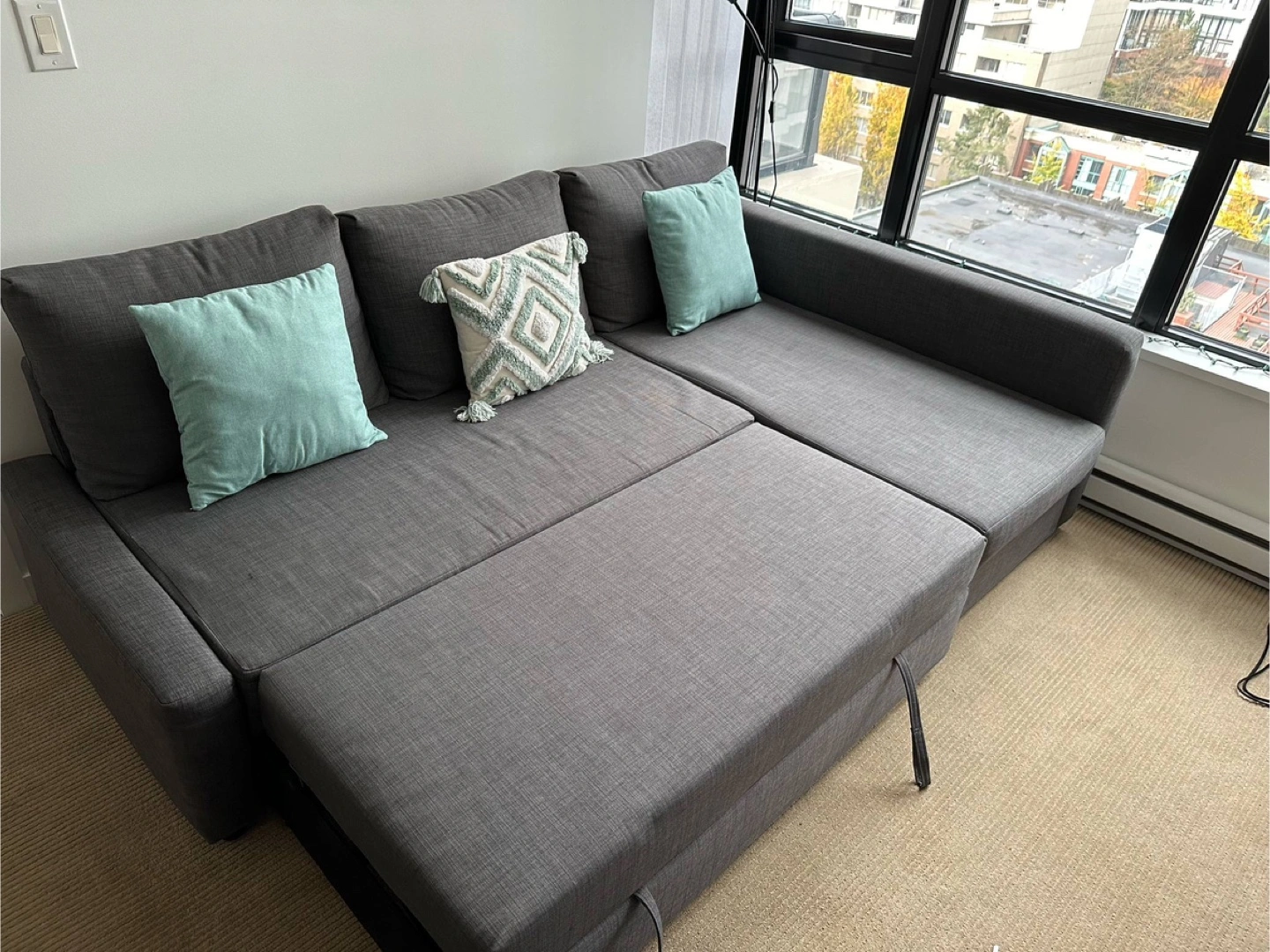 97IKEA FRIHETEN sofa bed in dark grey fabric. Pull-out bed mechanism. Spacious storage underneath. Good condition. Can be taken apart for pickup Pickup from the 25th May Collection in Yaletown only!