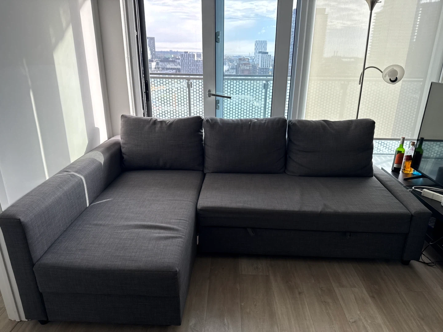 Selling a grey IKEA Friheten sleeper sectional sofa. It's in great shape and perfect for small spaces! It also has a handy storage compartment under the chaise. This sofa easily converts into a bed, making it ideal for guests or movie nights. A comfortable and versatile piece of furniture for any home