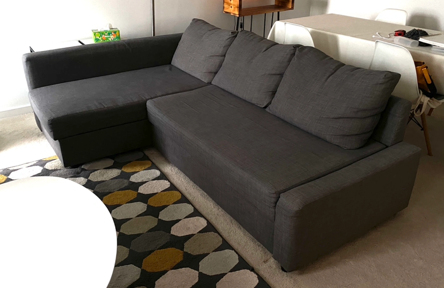 5Moving sale The legendary IKEA Friheten sofa bed with storage, in dark grey, in okay to good condition. https://www.ikea.com/ca/en/p/friheten-corner-sofa-bed-with-storage-skiftebo-dark-gray-s69216757/ Collect only
