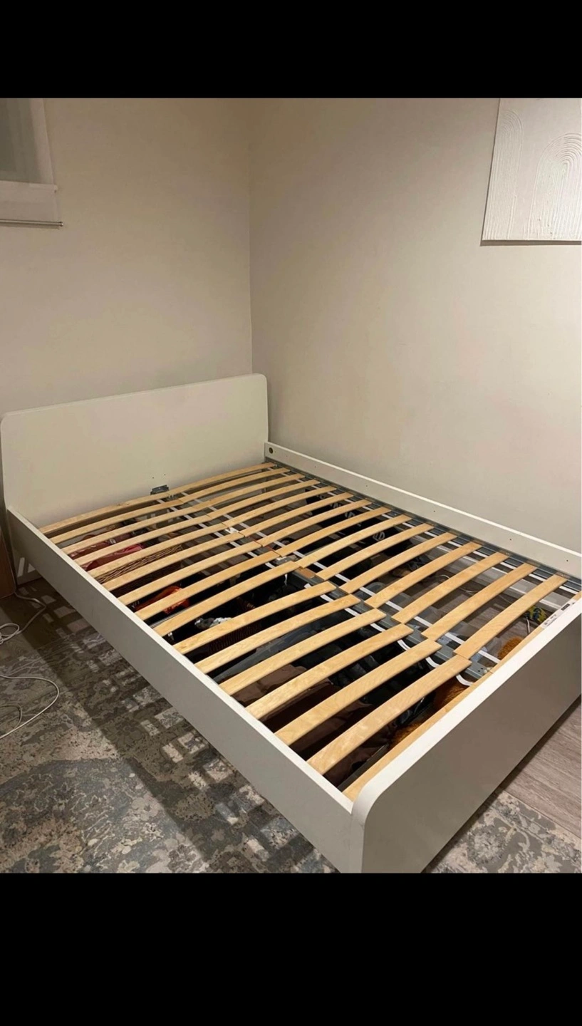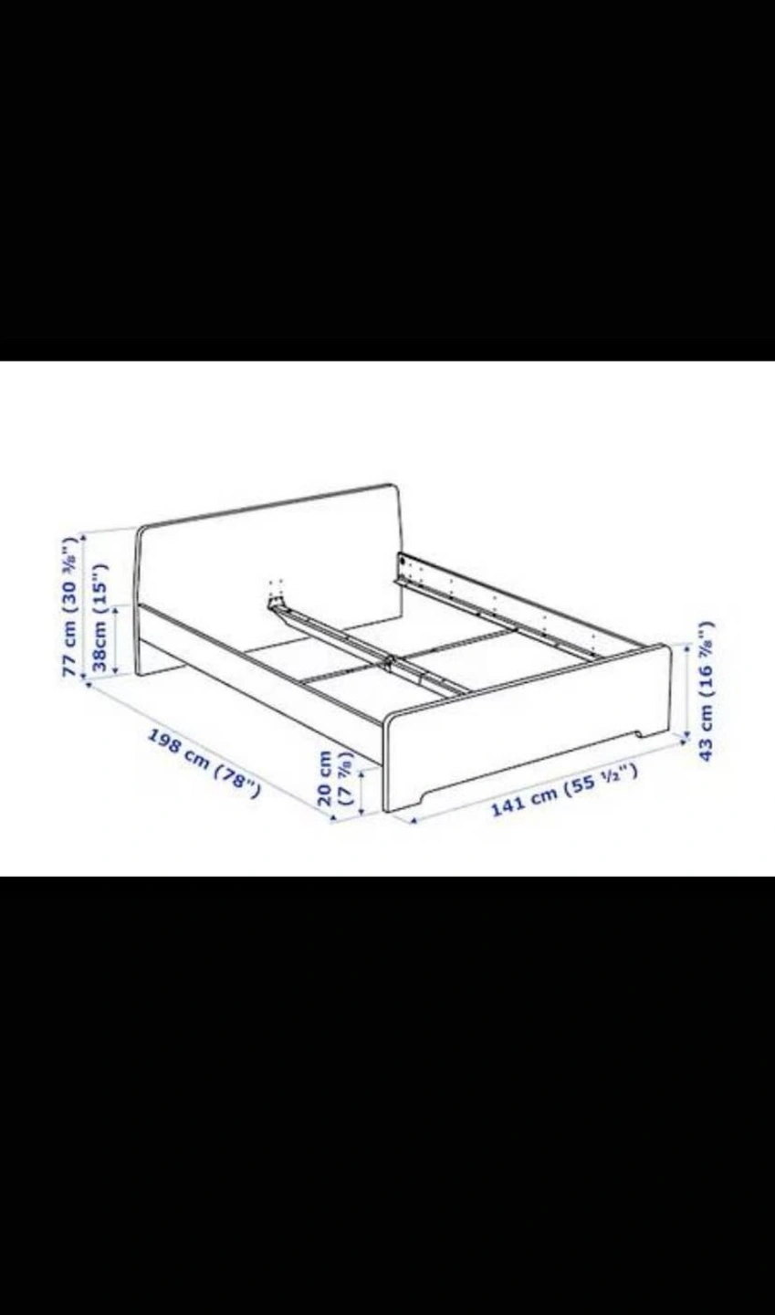 IKEA ASKVOLL Bed frame - FULL. Great condition. Hardly used Length: 198 cm (78 ") Width: 141 cm (55 1/2 ") Footboard height: 43 cm (16 7/8 ") Headboard height: 77 cm (30 3/8 ") Mattress length: 189 cm (74 3/8 ") Mattress width: 135 cm (53 1/8 ") Great for storage under bed! All screws and slats are included.