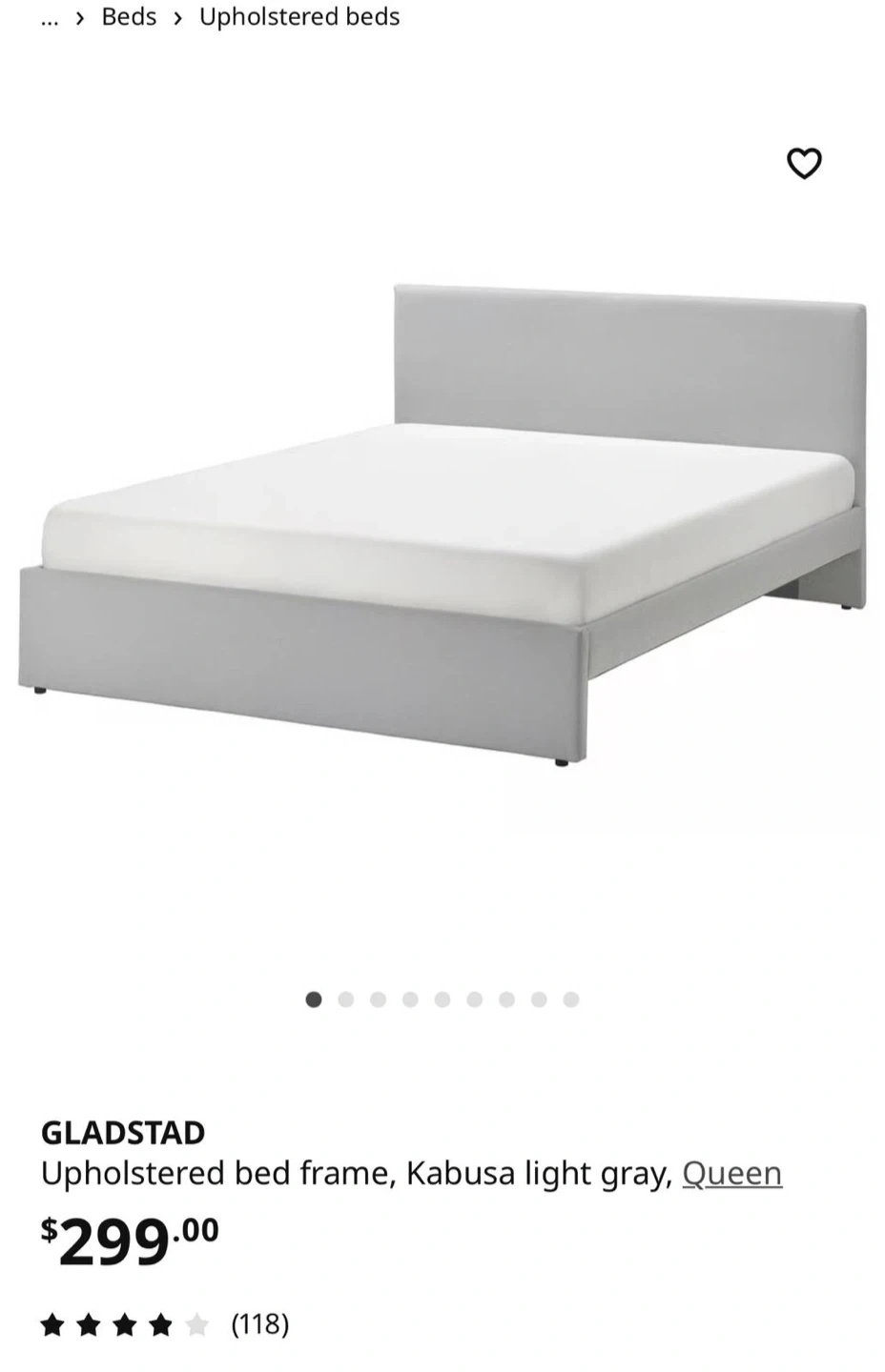 IKEA GLADSTAD Queen Bed Frame - Light Gray