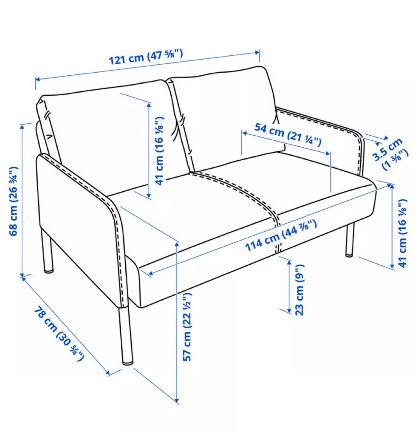 77Selling a practically brand new IKEA GLOSTAD loveseat in grey. It's in great shape and super comfy! Dimensions are located on the last image. Perfect for a small space or apartment. Bought for dorm room, but never used it, only sat on it twice. Is priced at $199 on Ikea Note: There are some scratches on the legs from moving, but can be easily painted over
