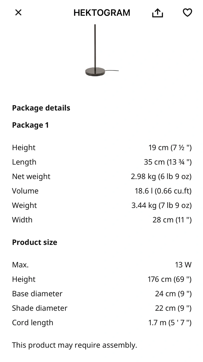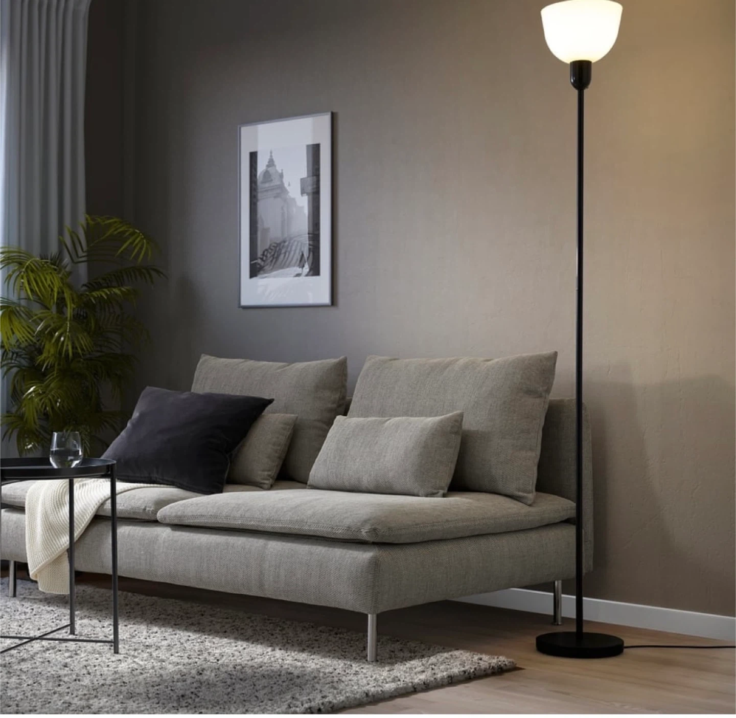 204Ikea HEKTOGRAM Floor uplighter (with extra light bulb), Black/white Pick up at 20 Carlton street The top of this floor uplighter has a glossy white lampshade that directs light upwards and spreads a diffused, pleasant light around a room. A good choice for those who want a lot of light for the money.