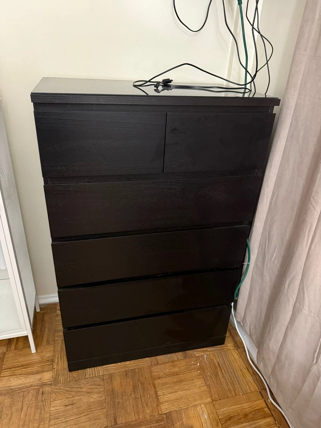 68Selling a gently used IKEA Hemnes 6-drawer dresser in black-brown. It's perfect for adding storage to any bedroom or living space. This dresser is in great condition and ready for a new home. It's a stylish and practical piece!