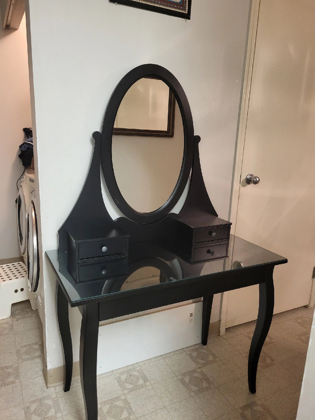 Glass Round Dining Table with 4 Black Chairs