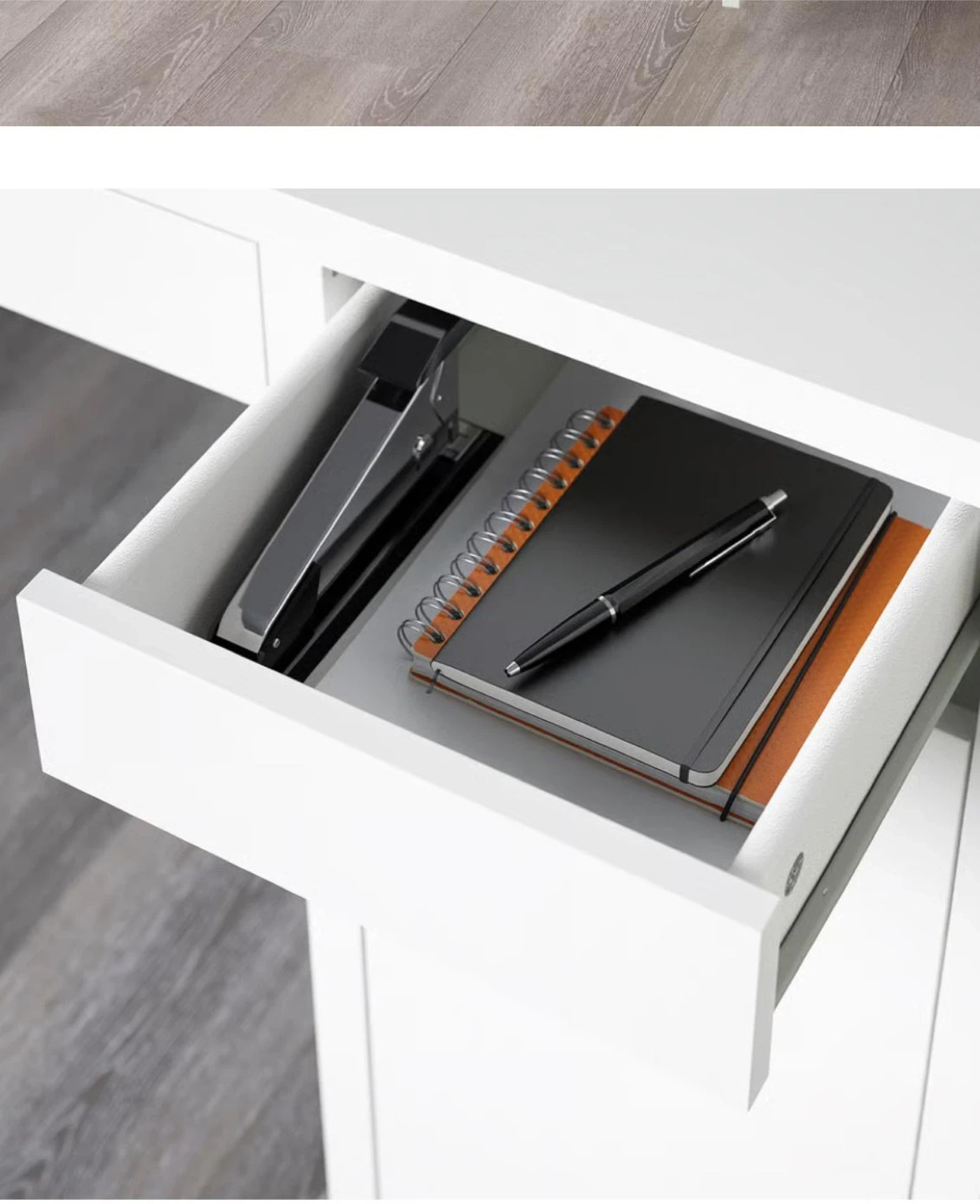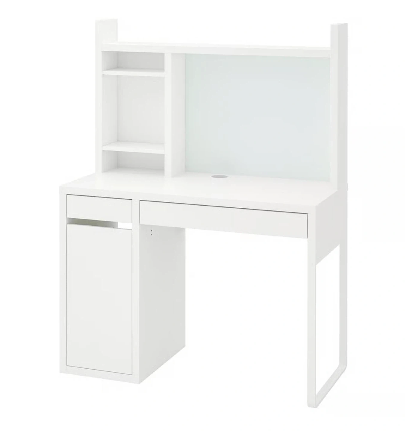 10Selling a white IKEA Hemnes desk with a hutch! It's in great shape and would be perfect for a home office or student. The desk has a clean and simple design, with a built-in hutch for extra storage and organization. Dimensions are 105 cm (41 3/8") wide, 50 cm (19 5/8") deep, and 140 cm (55 1/8") high