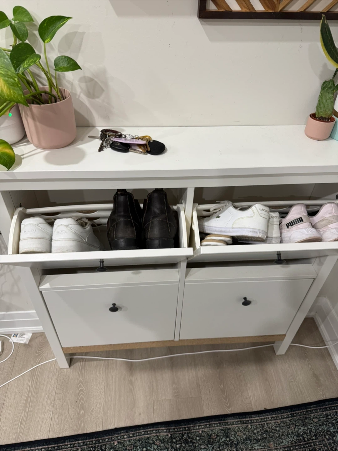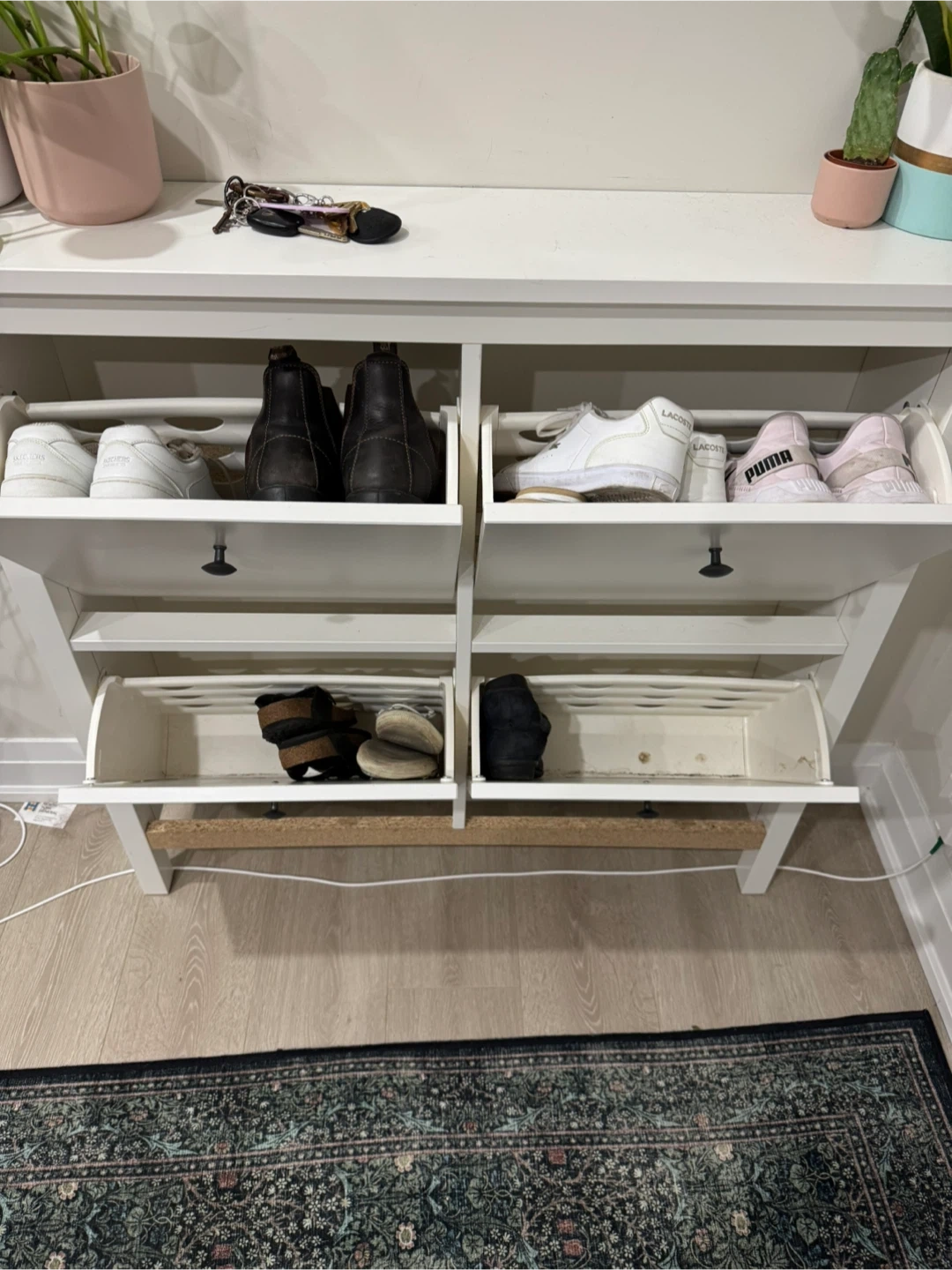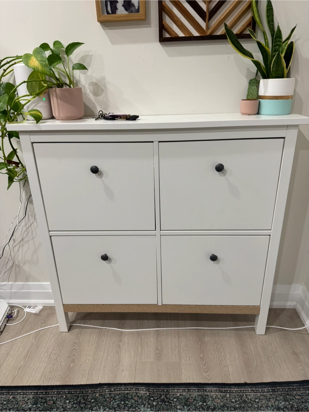 Selling a white Ikea Hemnes shoe cabinet! It’s in perfect shape and provides a stylish storage solution for your footwear. Perfect for keeping your entryway tidy and organized! Moving sale and there is no spot for it in my new place.