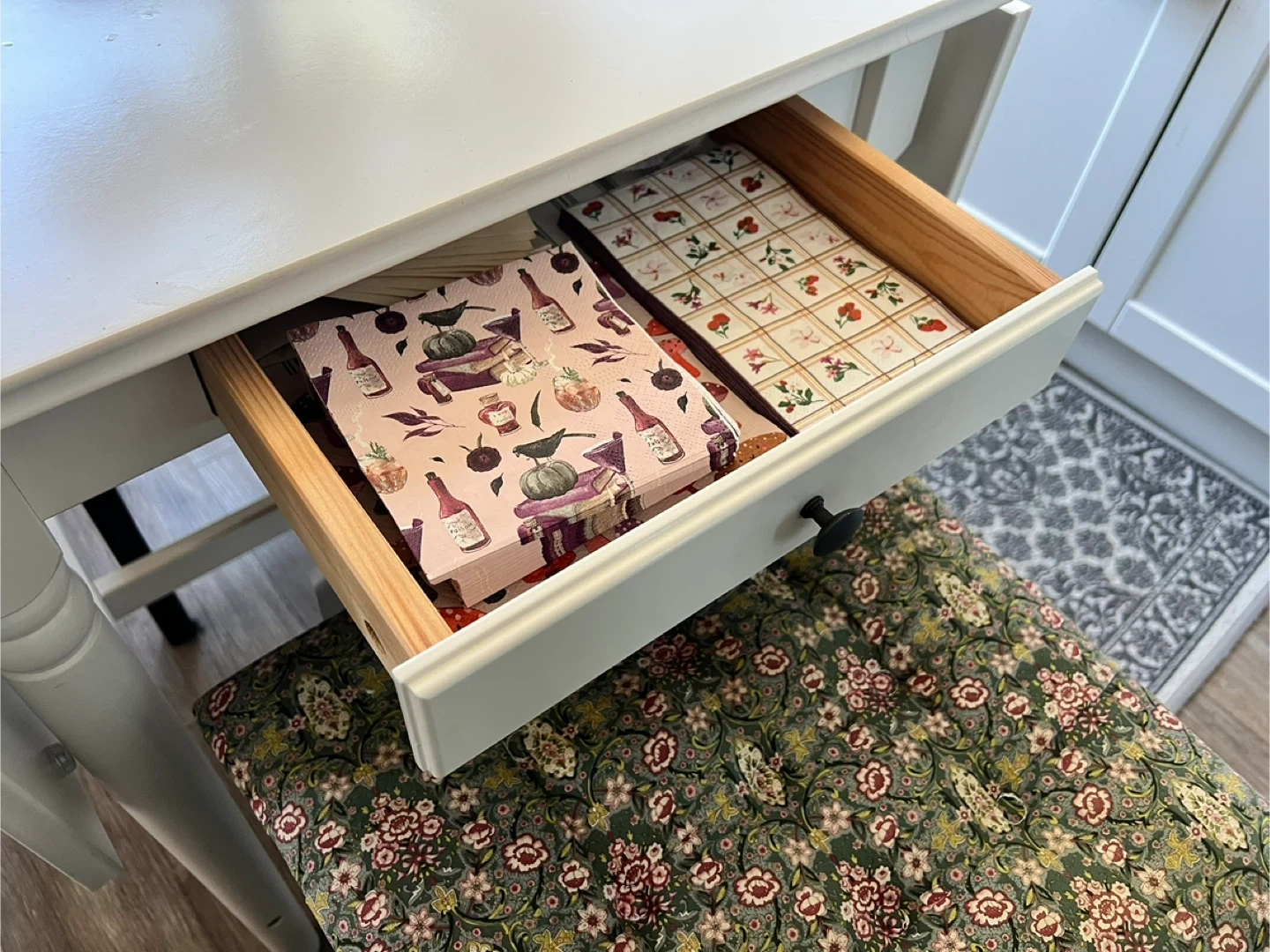 65$50 for table alone, $75 for table + 4 chairs, Selling individual chairs $10 each Selling a used IKEA Ingatorp drop-leaf table in white. It’s perfect for small spaces and can be extended when you have guests over. The table also has a handy drawer for small storage (I use for napkins). It's in mostly good shape with some surface imperfections, the worst is pictured on one of the drop leafs. Chairs are IKEA Stefan in brown-black (more black with a dark brown wood pattern detail). $10 each, or $25 as set with table. Solid and sturdy. Pick up only please